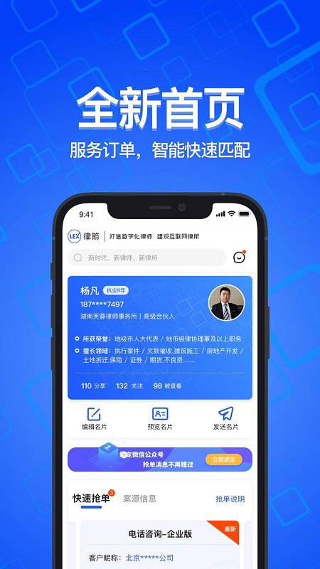 【优质服务】平台能够提供数量众多的优质案源、协作订单以及服务订单。