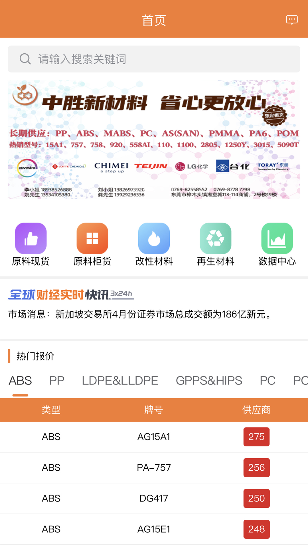 模块一:针对各类塑化产品(包括原料、改性料、再生料、助剂等)提供专业且安全的报价、询价以及多种相应的衍生功能。