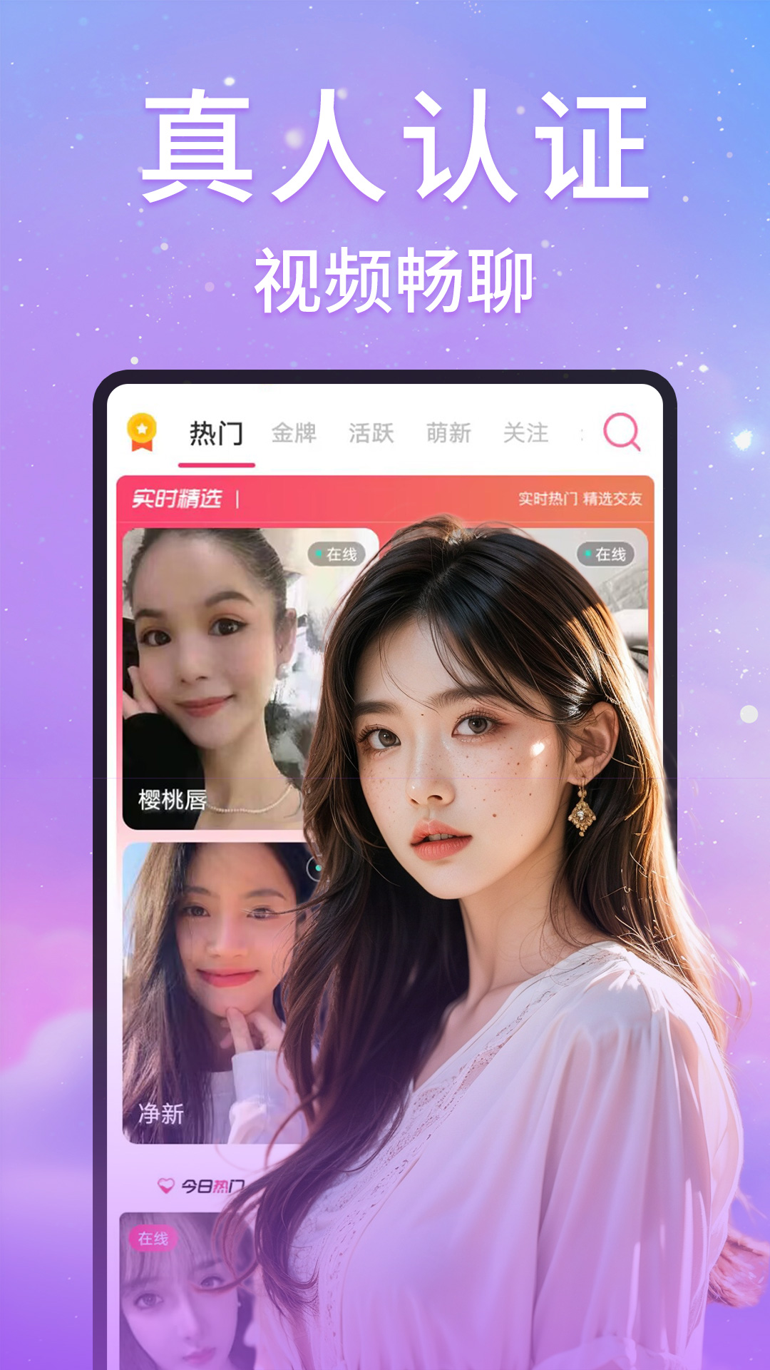 星糖视频聊天,这是一款超棒的视频聊天交友软件哦。无论你想结交本地的朋友,还是身处异地的伙伴,在这里都能轻松实现。它24小时全天开放聊天功能,让你随时随地都能迅速地与有缘人相识交友,只要轻轻一点,就能畅快聊天啦。而且呀,这里的用户都经过真人认证,大家都是怀着真心来交友的呢。