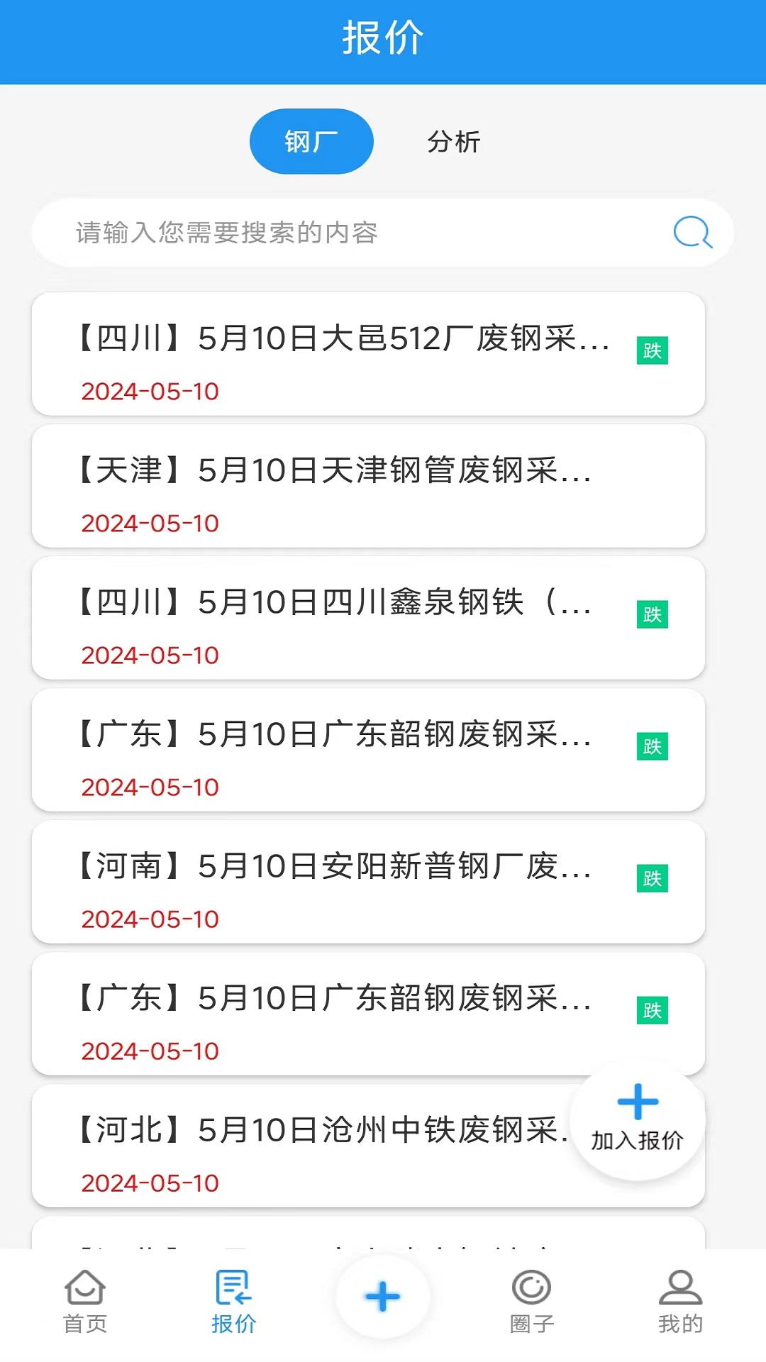 废钢圈,这是属于我们废钢行业自己的专属圈子哦!我自己就在通过废钢圈查看行情、开展业务呢。在这里,实时的报价信息、供求资讯以及设备买卖相关的内容全都有。如此全面且便捷的平台,还在等什么呢?赶紧加入废钢圈吧,可别错过这个好机会啦!