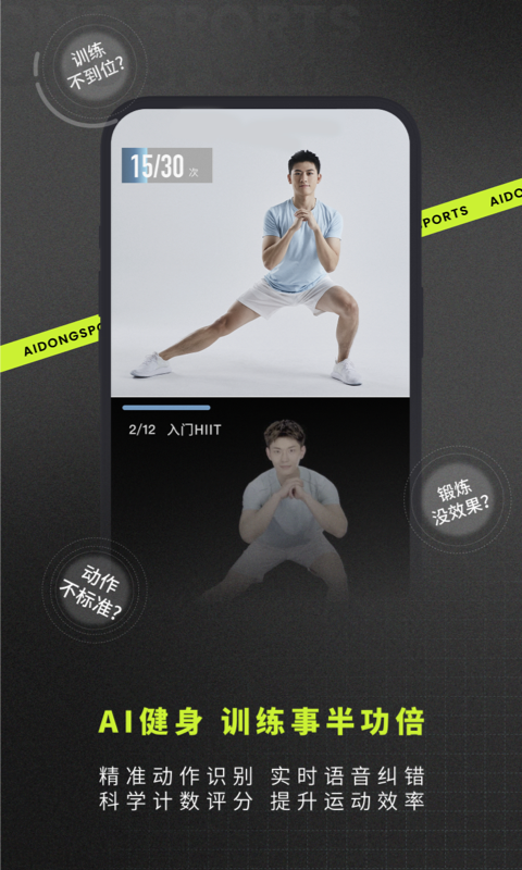 【爱动的解决方案:爱动的训练课程全部由真人拍摄,并且配合专业而细致的讲解,这样跟练就更容易。通过训练计划和组队挑战,能让您的目标更加明确,训练也更有趣味性!】