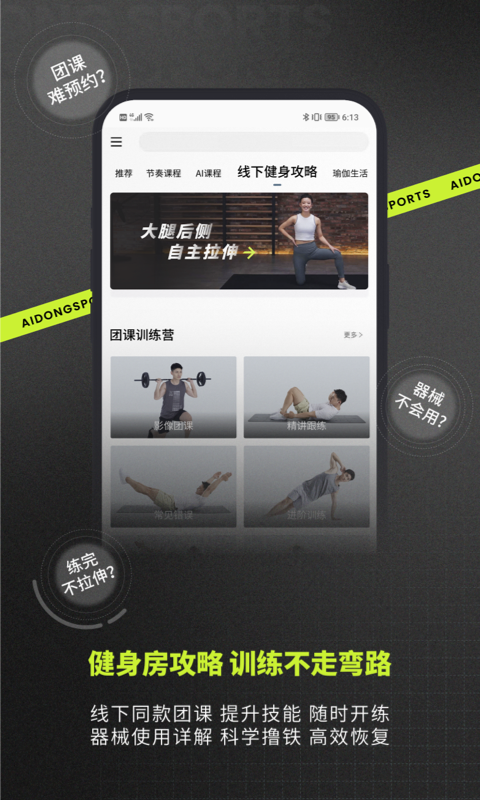 【爱动的解决方案:爱动依据课研实测有效的运动方式,将其量化成运动轨迹,形成跟练课程,并且还有器械教学辅助,让您一看就懂!】