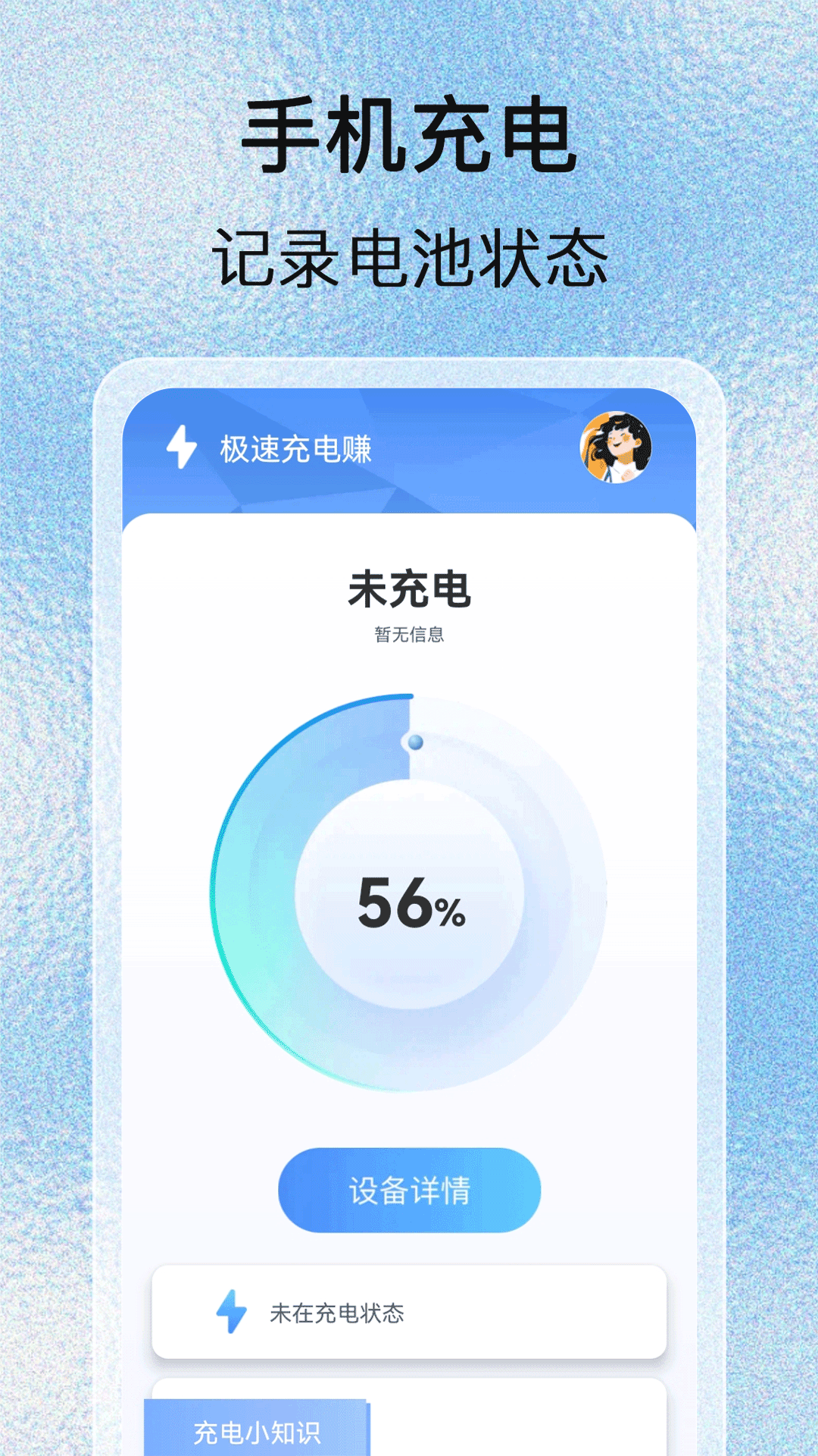 在[充电]功能板块:用户能够查看自己设备的详细信息,像手机型号、系统、内存等这类基本信息。同时,它还会显示手机当前是否处于充电状态。而且,在这个板块下方为用户提供了充电知识,这有助于用户了解怎样科学充电,从而更好地保护自己的电池和手机。