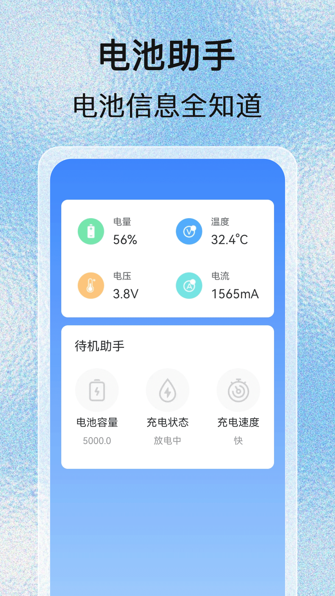 在[工具]功能板块:用户可以看到剩余电池电量、手机当前温度、电池总容量等基本信息,使用户能够更便捷地掌握电池状态。