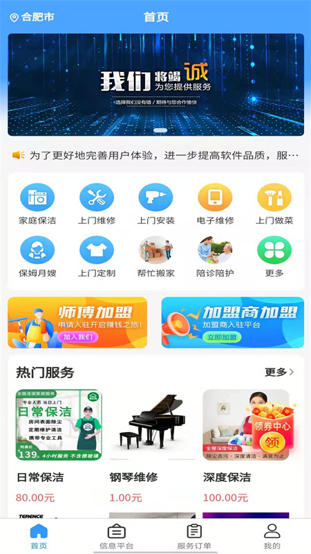 零米云生活服务到家APP是安徽创廷软件科技有限公司精心打造的一款上门服务平台。在这个平台上,精心挑选了众多高品质的家庭服务,像家庭保洁、电器维修、上门安装、上门做菜、保姆月嫂等数十个常用类型的服务都涵盖其中。