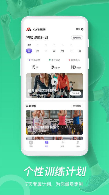 KWEI运动是一款能够与健身运动器材配套使用的应用软件。它借助蓝牙BLE技术,与跑步机、健身车等健身设备建立连接,从而达成多种应用模式,并对运动数据进行记录,而且还支持运动数据的分享。除此之外,该软件还带有课程视频、实景视频以及计划训练等内容,这为运动增添了不少趣味。