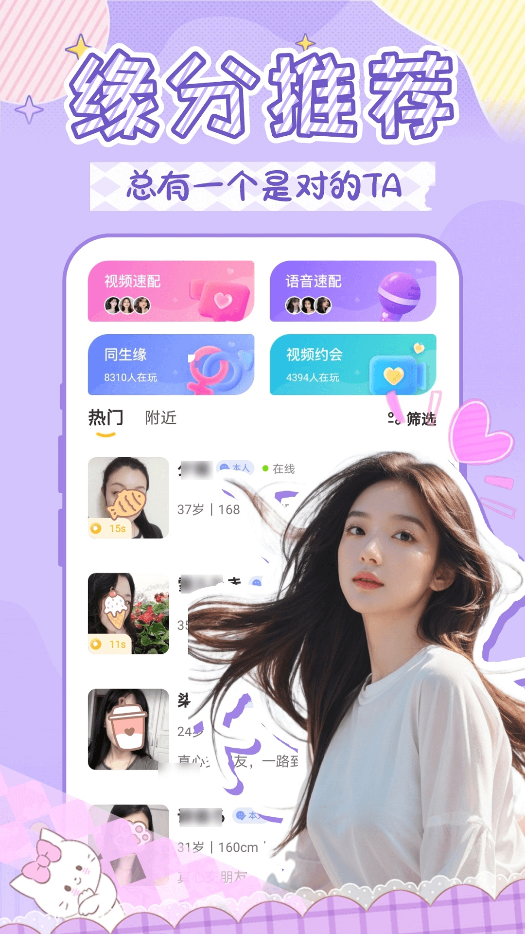 我们运用智能算法进行精准匹配,每一次滑动屏幕都可能是一次惊喜的开启。同城的你们,距离不再是爱情或友情的阻碍,缘分近在咫尺。而且,这里拥有安全私密的交流环境,你可以毫无后顾之忧地尽情畅谈,尽情享受纯粹的社交乐趣。友缘同城交友约会,就是这样一个让每一次相遇都成为美好故事开端的地方!