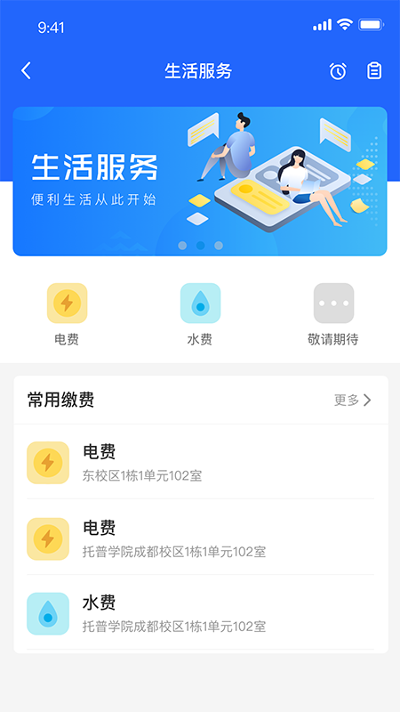 在功能方面,它涵盖了智慧生活与智慧办公两大板块。其中智慧生活板块包含报修、投诉建议、水电充值等功能;智慧办公板块则包括考勤打卡、汇报管理、考核签到等功能。