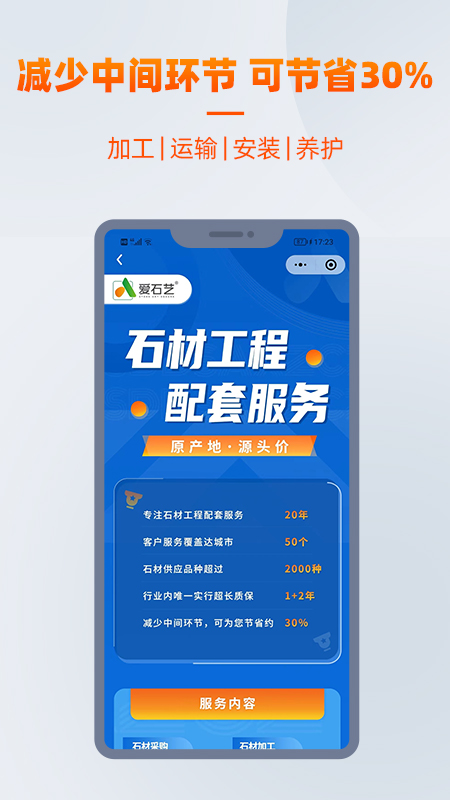 在石材行业中,爱石艺属于极少数能够为客户提供石材产品与价格标准化、规范化服务的配套商。通过这样的服务,能够为客户达成省钱、省时、省心的可量化价值,这一创举无疑将在行业内引发重大变革。