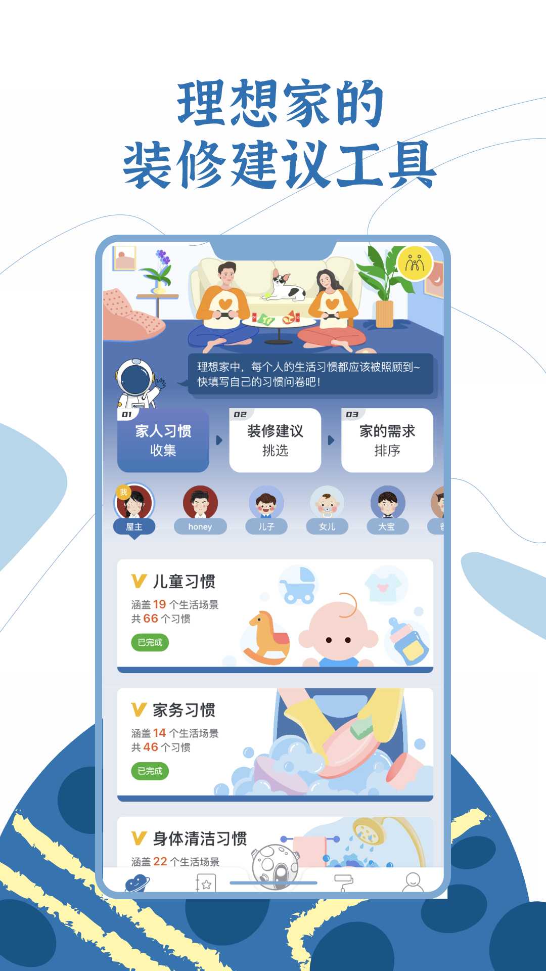 不过,现在有月球理想家装修建议工具,能让你做装修功课变得更轻松、更科学。你只要把自己的生活习惯填写好,后台就会有专业的团队根据你提供的信息,为你精心整理出家里装修时需要知道的注意事项以及设计建议。