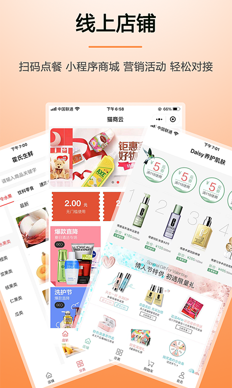 猫商云具备多种营销功能,如折扣券、满减券,还能给附近的客人发券,如此一来,增加客源不再是难题。