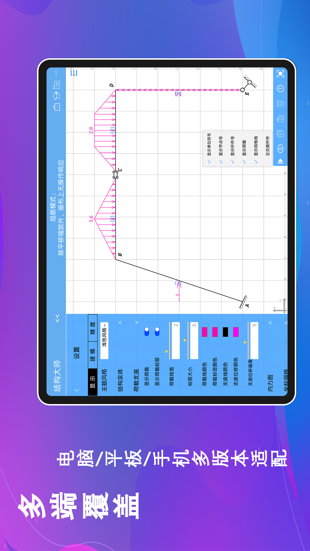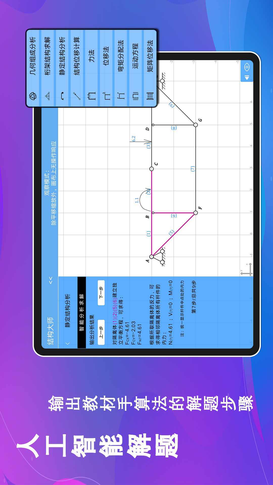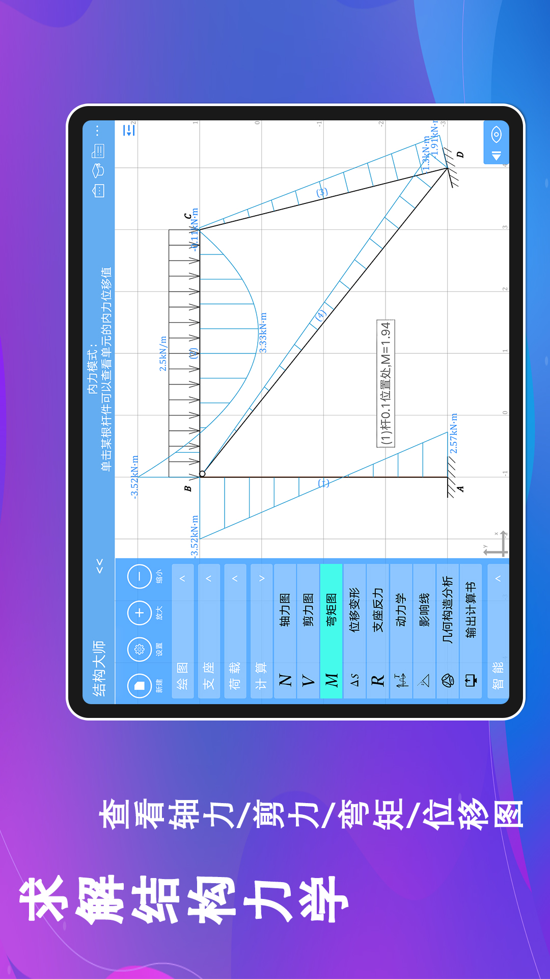 结构大师HD能够让您在平板电脑上开展结构分析,进行结构力学计算。