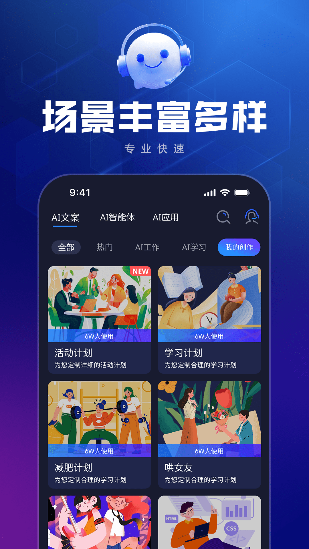 丰富多样的文案场景,工作总结报告、恋爱技巧、甩锅秘籍、短视频文案、小红书爆款文案、故事创意、小说作家、菜谱、论文生成等等应有尽有。