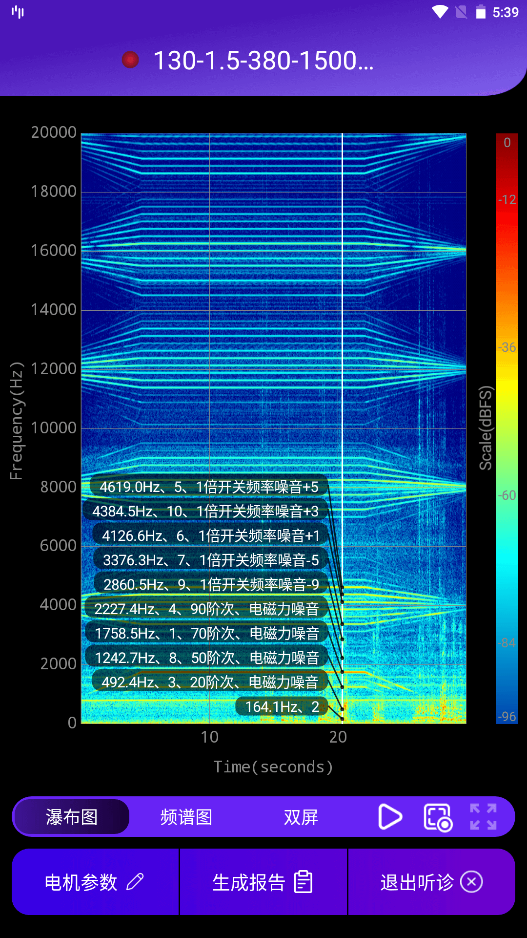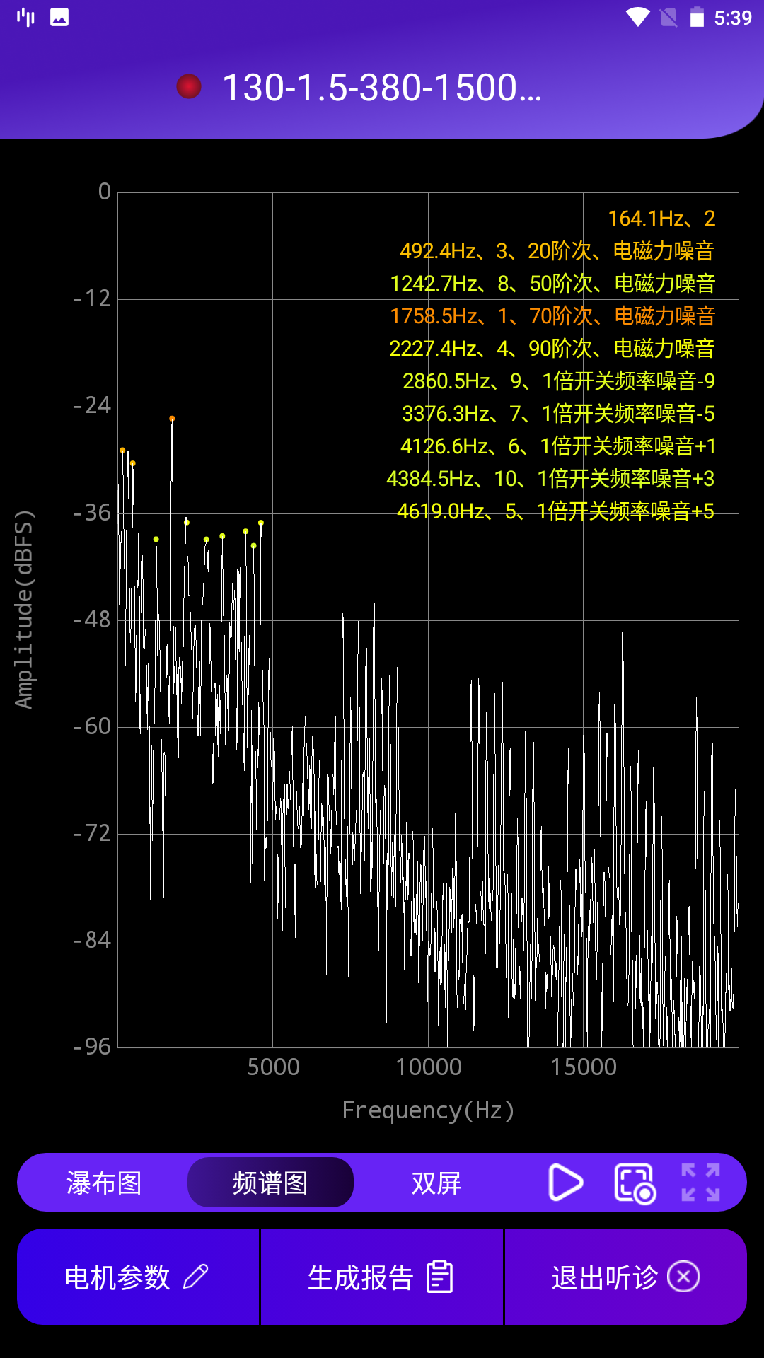 “电机听诊大师”是一款集成了智能算法和电机工程学知识库的智能APP,它能够一站式完成电机噪声的数据采集、成分分析和噪声源定位。用户可以实时查看噪声的瀑布图和频谱图,同时APP会自动标注噪声的频率、强度、阶次和来源,简化了分析过程。此外,用户还能一键生成专业的诊断报告,极大提升了电机振动噪音诊断的效率和准确性。