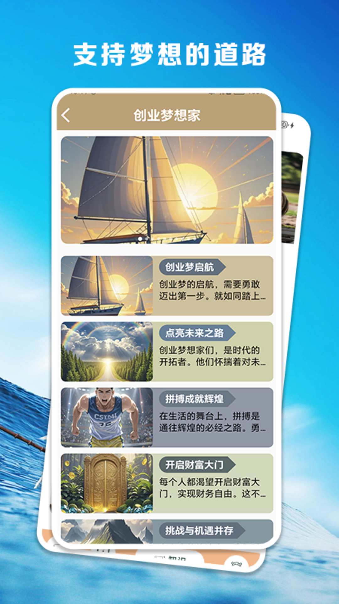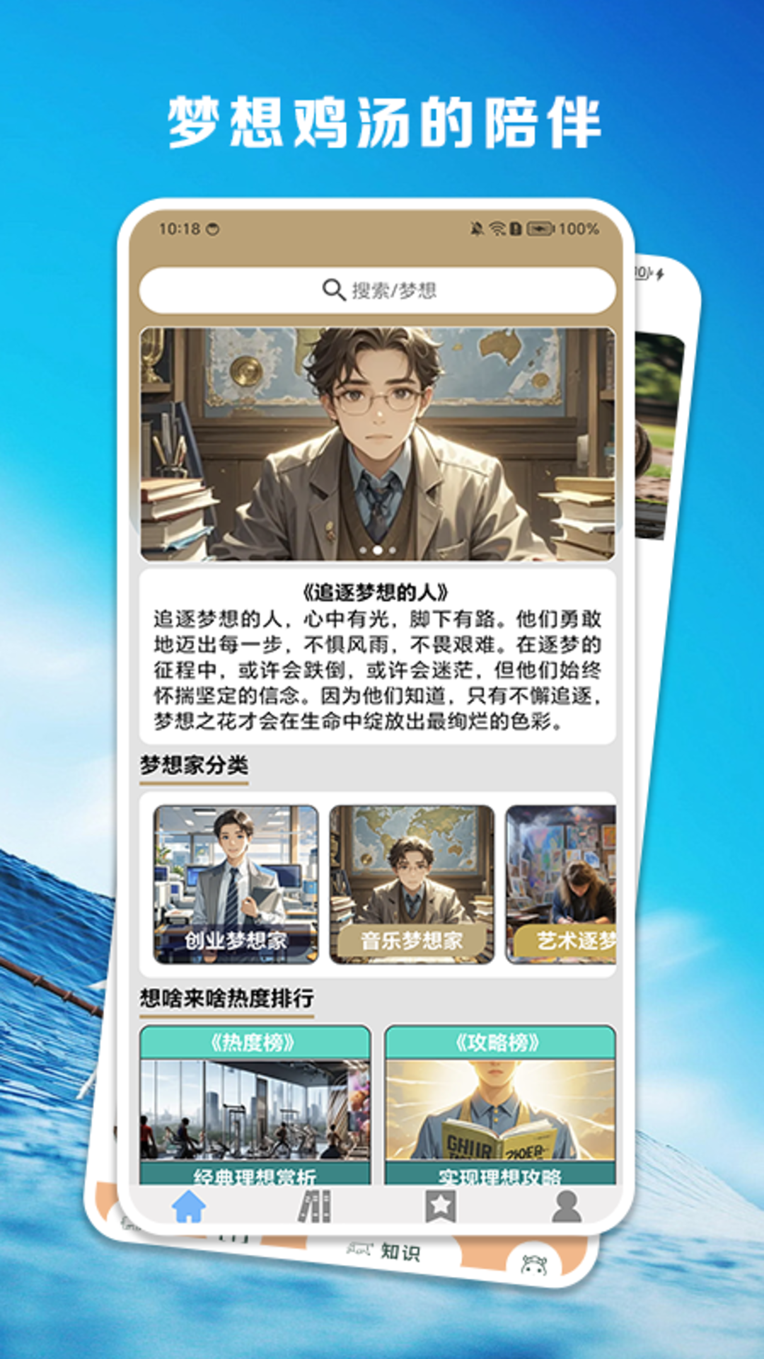 分类功能更是 “想啥来啥” 应用的一大特色。梦想家分类汇聚了众多不同的梦想并给予鼓励和支持,帮助克服实现梦想过程中的各种困难和挑战。梦想故事板块则充满了温暖与感动,其中的梦境故事、音乐梦想、科技梦想和想象趣事等内容,让用户在阅读中感受到梦想的力量和美好。无论是沉浸在奇幻的梦境故事中,还是被音乐梦想者的执着所打动,亦或是为科技梦想的创新而惊叹,这些故事都能激发用户内心深处的梦想火花。