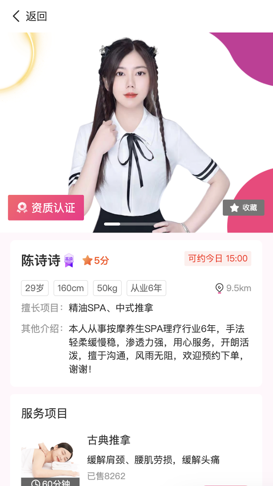 5、认证技师:所有技师通过头像认证,通过真人实拍
