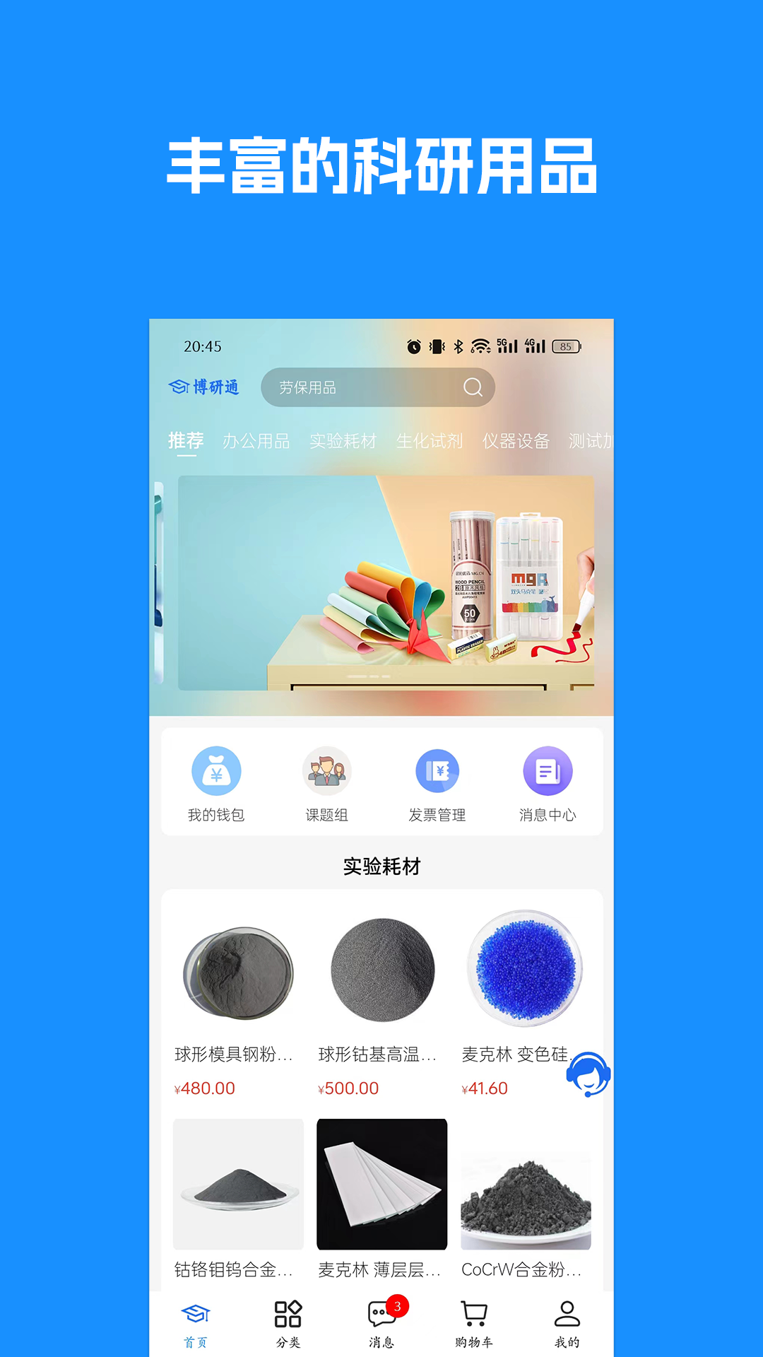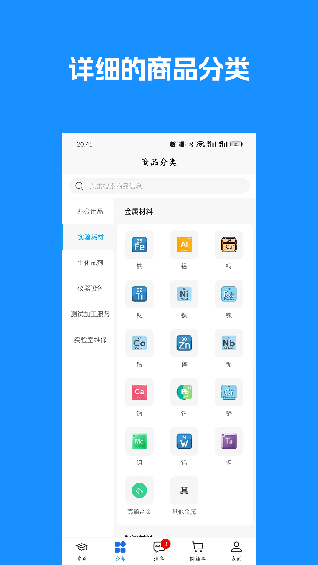 目前平台已涵盖丰富的科研用品,包含实验耗材、生化试剂、仪器设备、测试加工服务、实验室装修维保五大产品分类及上千个对应分类产品。