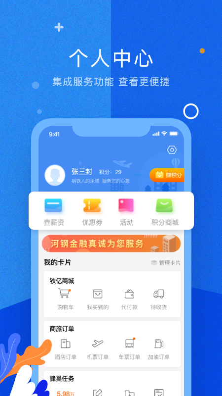 在铁亿平台上,有着诸多便捷的功能:员工可以通过福利积分自由兑换心仪的商品或服务;能够便捷地查询工资明细,让收入情况一目了然;还可以轻松订购商旅出行相关的服务,让差旅安排不再繁琐。