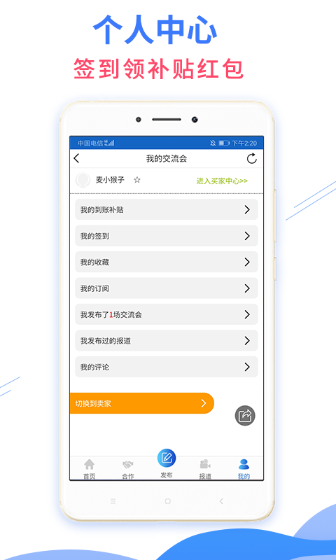 1. 定位功能:能够为用户提供定位地点周边的交流会和地摊资讯,并且通过扫码与定位功能的结合,实现定位签到。