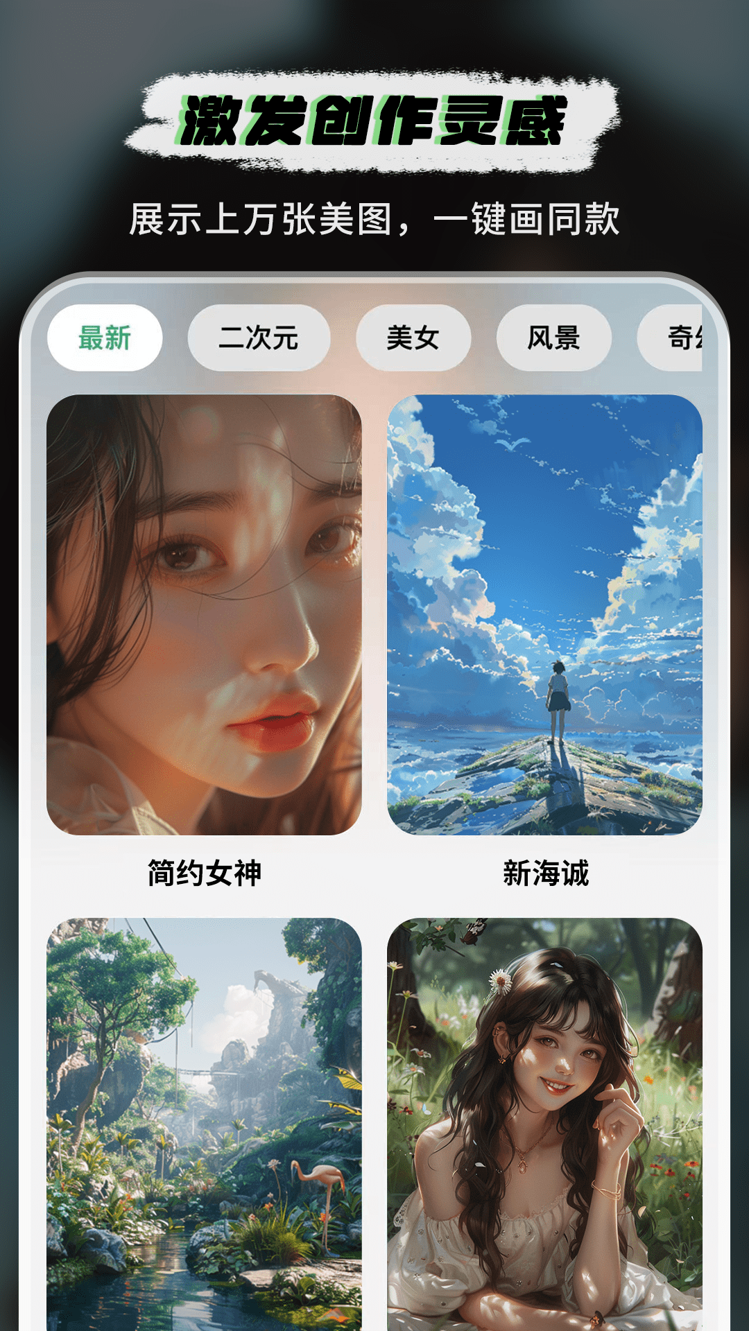1.首页活动画作、详情页优化 2.抽奖福利、排行榜政策更新 3.增加AI绘画修饰词库 4.自动填充模型风格