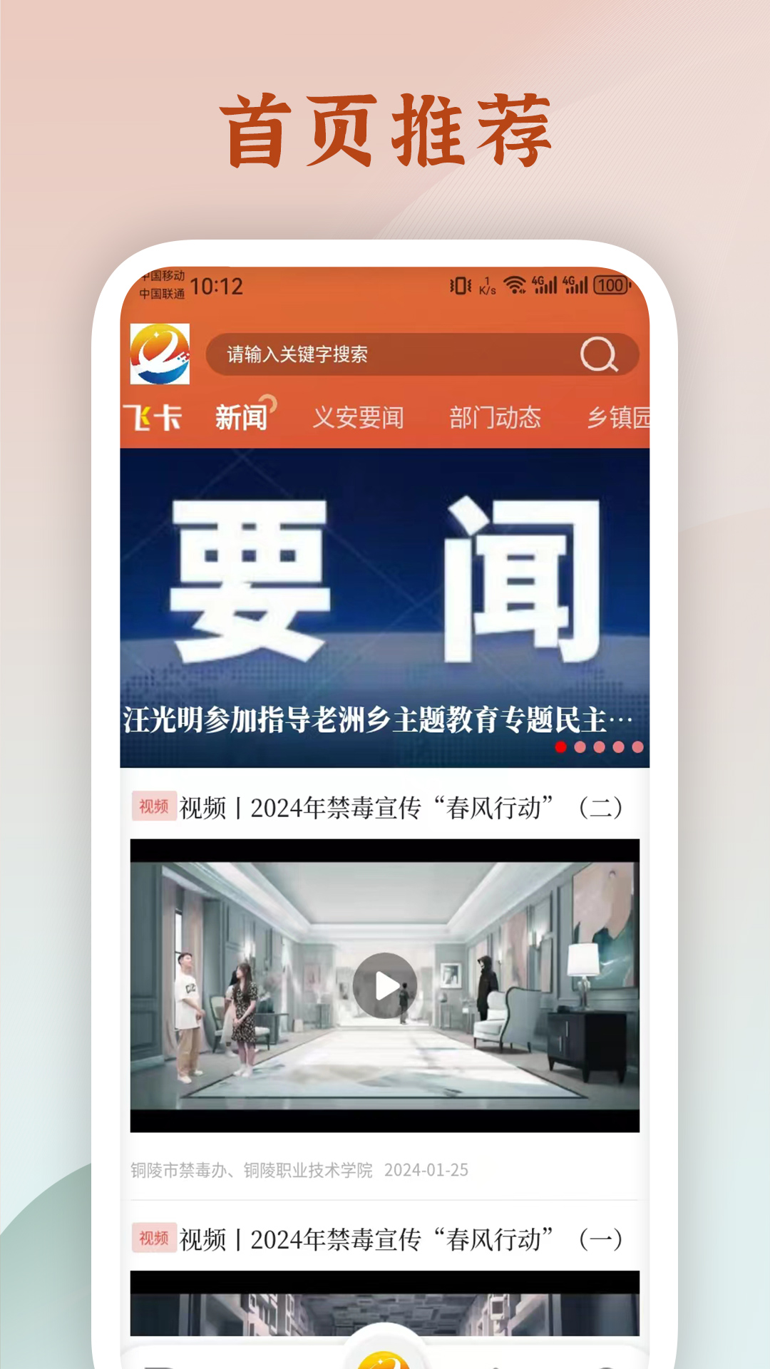 义安当地新闻软件,主要是用来分享地方新闻,服务当地群众,软件中的直播模块用来分享一些视频直播、视频动态等等。