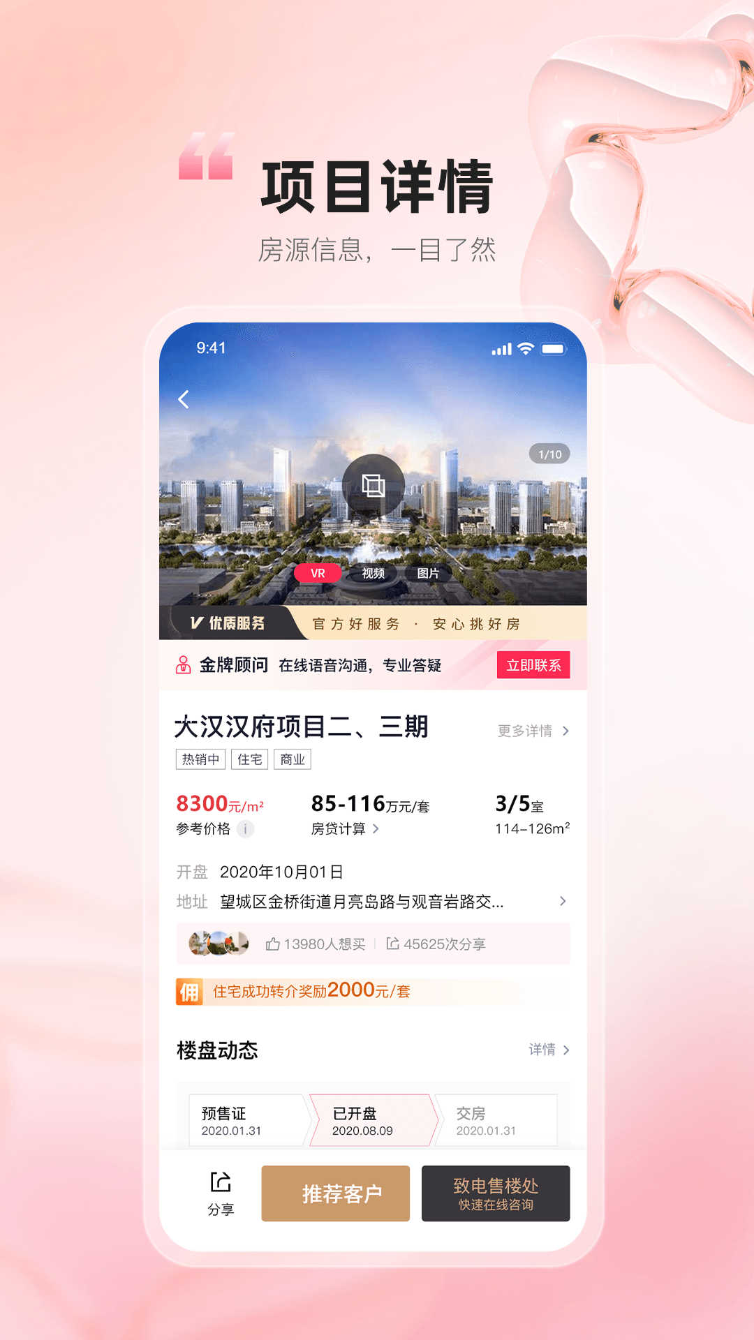 项目信息展示线上看房、推荐客户