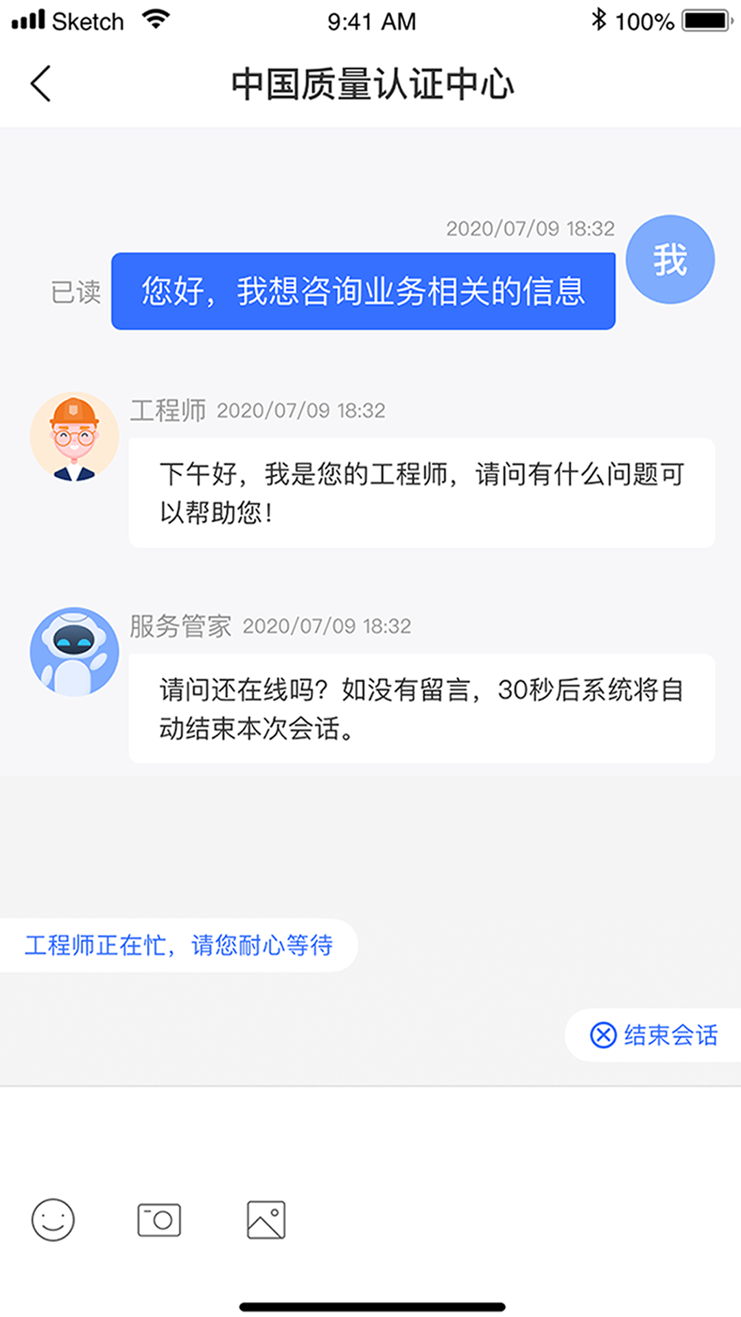 【沟通交互】发起在线咨询,连接CQC认证工程师,实时咨询认证业务。