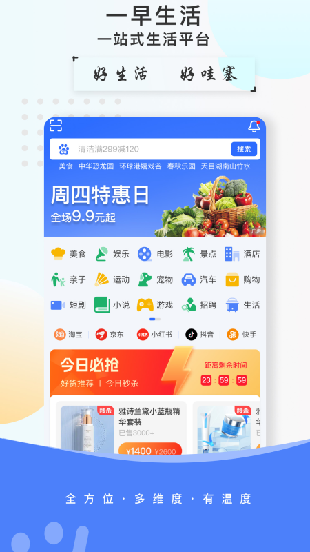 “一早生活”APP是一款综合性应用软件,它将生活、娱乐、办公和社交功能集于一身。在这里,你能像使用百度搜索一样便捷,尽情享受各种生活乐趣。你可以品尝美食的诱人滋味,可以开启疯狂购物之旅,可以畅游四方领略不同风景,可以挥洒汗水感受运动的快乐,可以在书海中尽情遨游汲取知识,可以观赏精彩的视频。此外,还有解压小游戏,让生活变得更加丰富多彩。我们全力以赴,旨在为用户打造一个极为便捷、功能多样且能跨平台使用的聚合性生活应用。