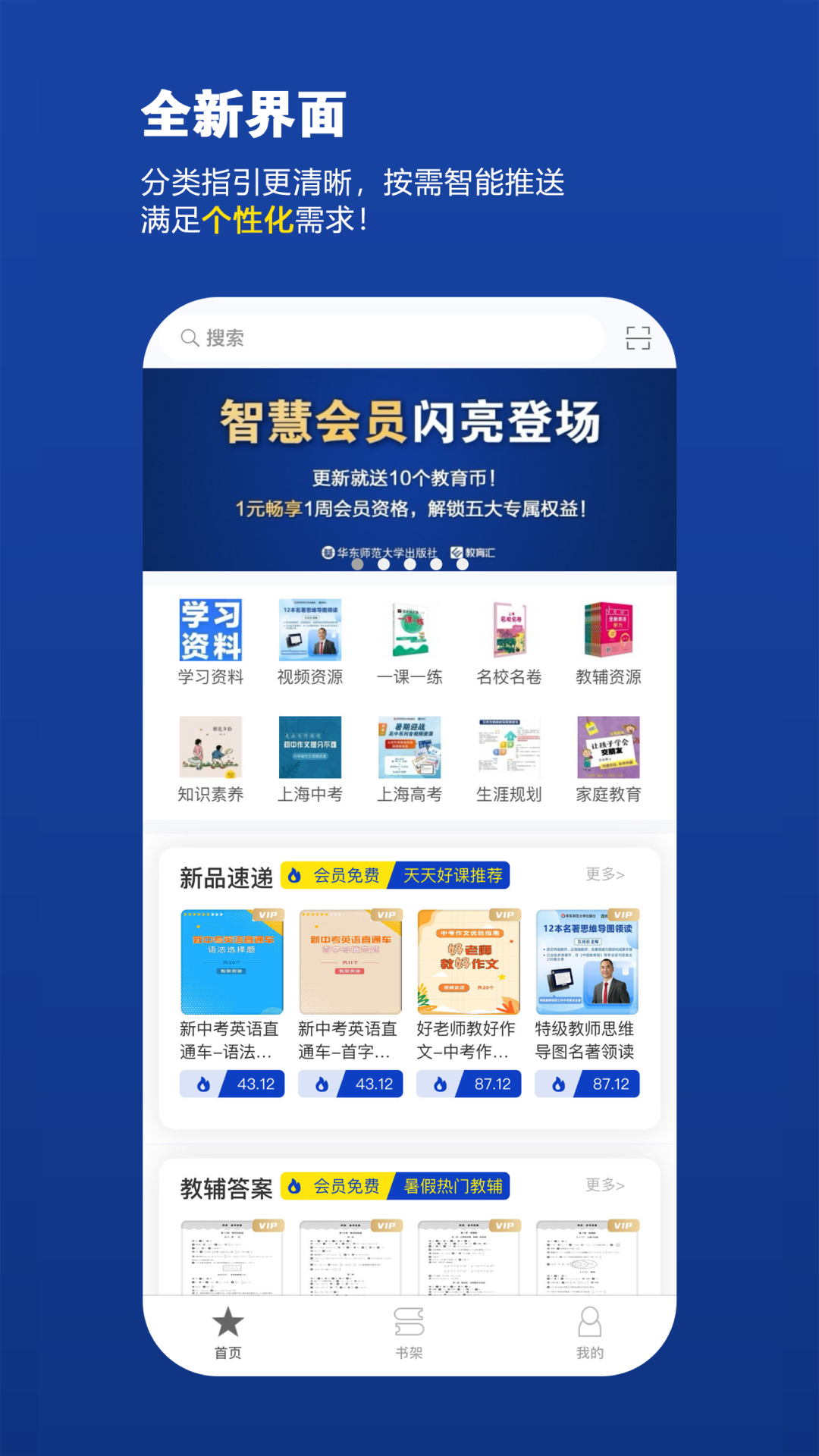 华东师范大学出版社的“教育汇”APP数字教育平台,是一个汇聚全社资源的官方平台。经过多年的探索与运营,它在已有纸质图书附属融合产品功能的基础上进行了成功拓展,而且持续改进、融合发展。当前,该平台已成功构建“智慧会员”成长体系,凭借多样化的会员权益打造出K12教育成长平台。