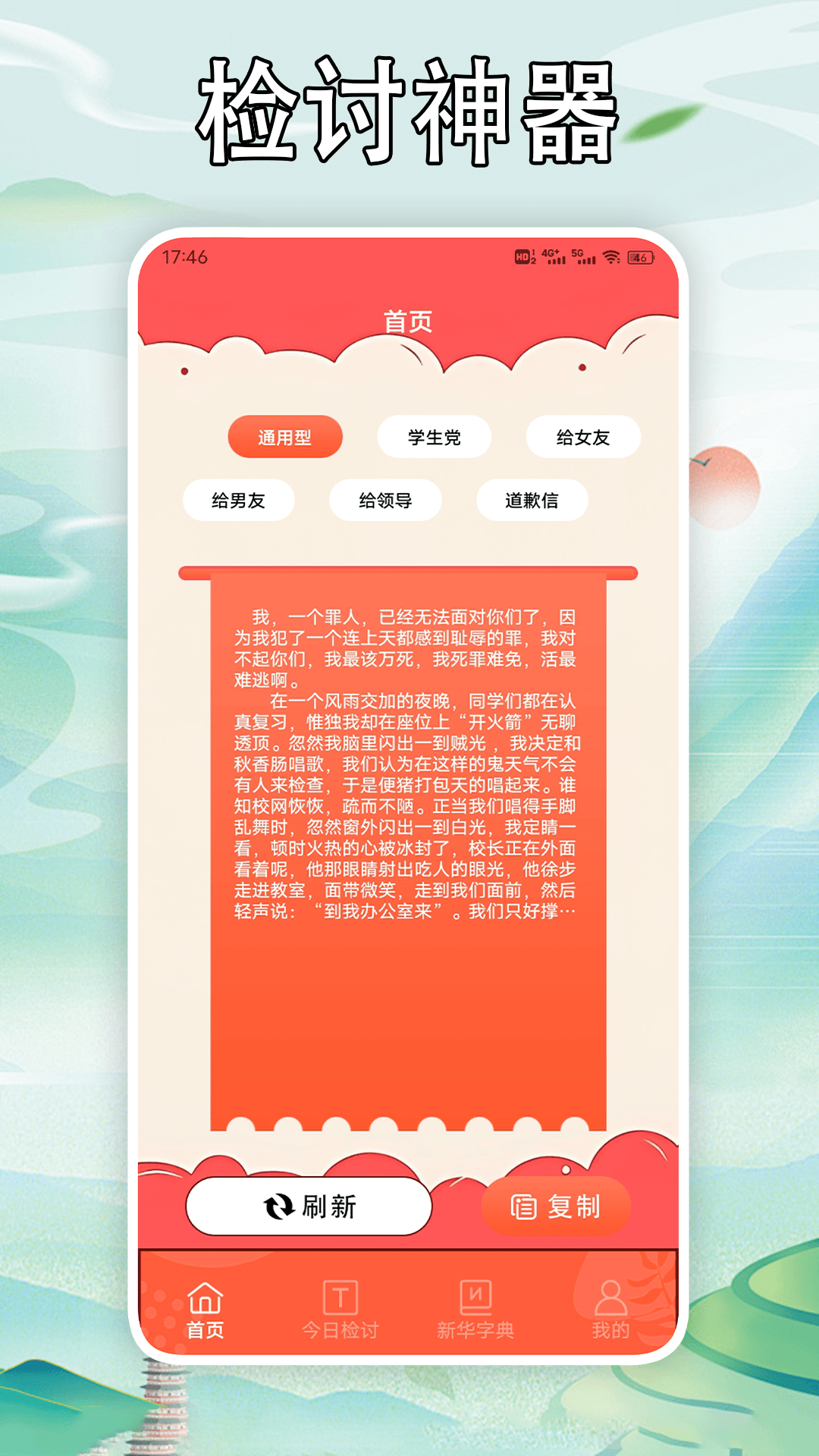 写锤子检讨神器,这是一款超实用的检讨书生成软件。