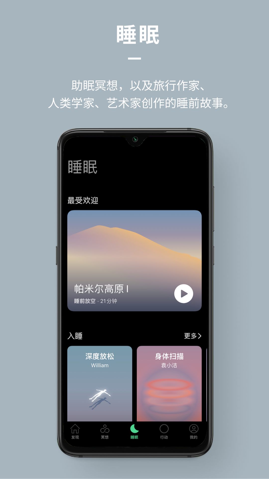 还有助眠冥想,以及由旅行作家、建筑学者、艺术家等人士创作的睡前故事。这些都是为了帮助您平静地入睡而设。