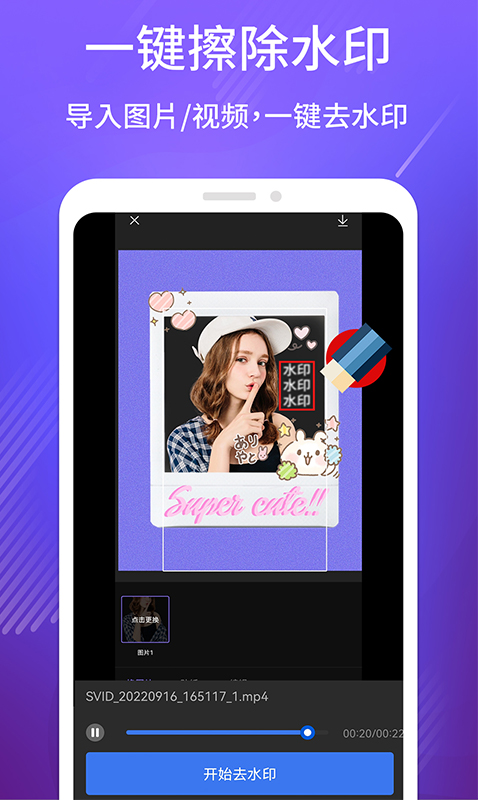 去水印是一款便捷且功能多样的工具。它不仅是一款能去除水印的实用工具,还能进行水印制作。它可对视频与图片进行去水印操作,同时支持在图片和视频里添加文字、图片、水印、LOGO等元素。此外,软件还提供多种视频剪辑工具,能无痕去除水印,让您摆脱水印带来的困扰!