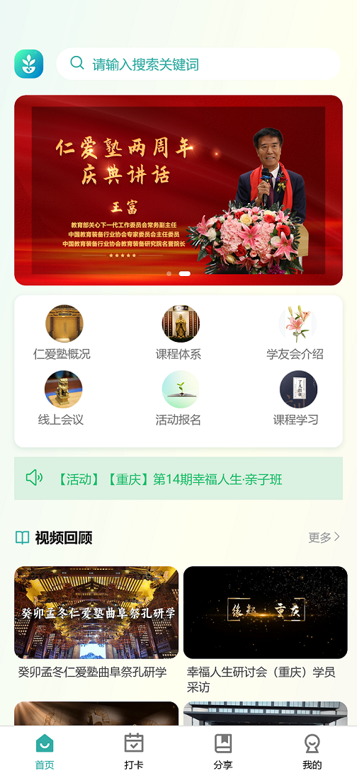 仁爱塾以全公益的形式,积极传承和弘扬中华优秀传统文化。它将弘扬中华优秀传统文化、传承家道视为自身的使命,专注于多个重要方面:在个人层面,注重心性的提升与修炼;在家庭方面,着力于家道的传承与发展;针对青少年,侧重于心理健康的帮扶;对于企业,聚焦家风建设与经营;从社会角度出发,致力于推动社会共同进步与和谐。仁爱塾积极践行社会主义核心价值观,努力为中华民族伟大复兴、实现中国梦贡献力量。