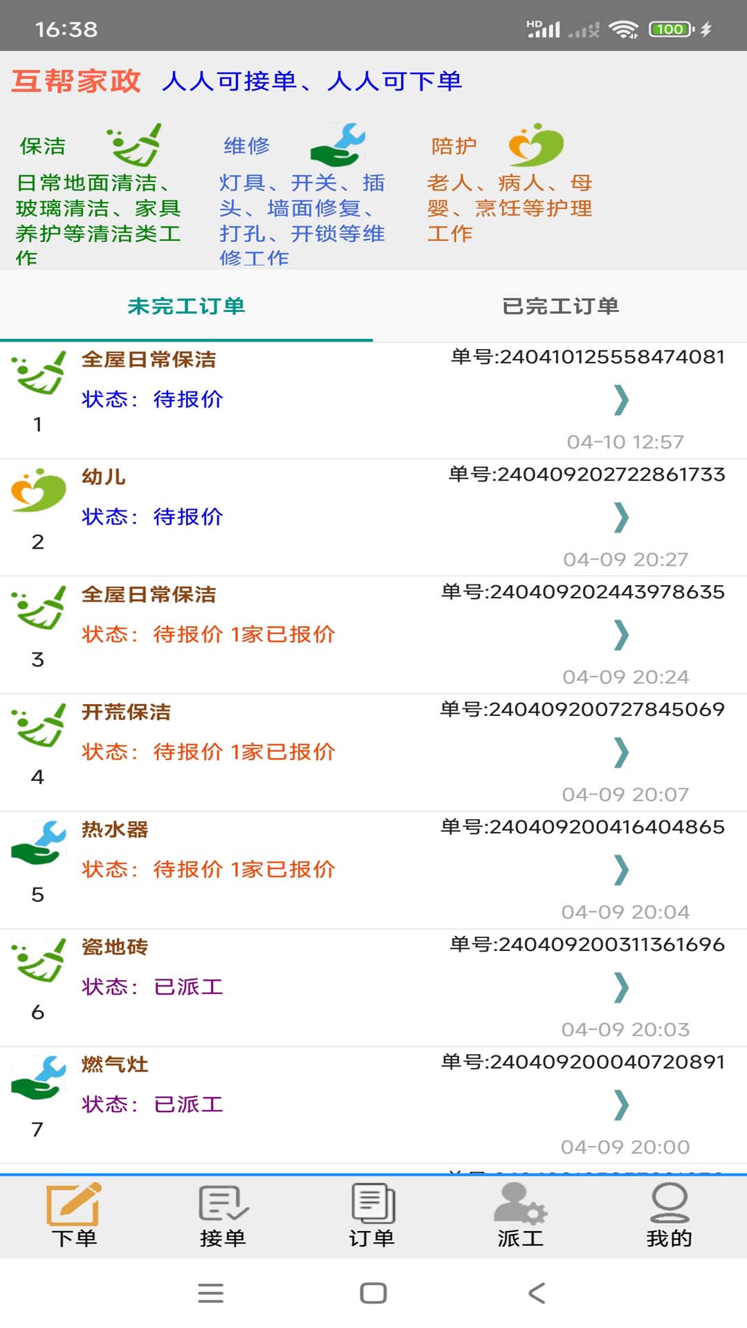 在这个平台上,用户注册之后既能下单家政服务,也能够承接家政服务订单。针对用户承接的服务订单,软件还贴心地配套了派工管理、业绩统计等功能。