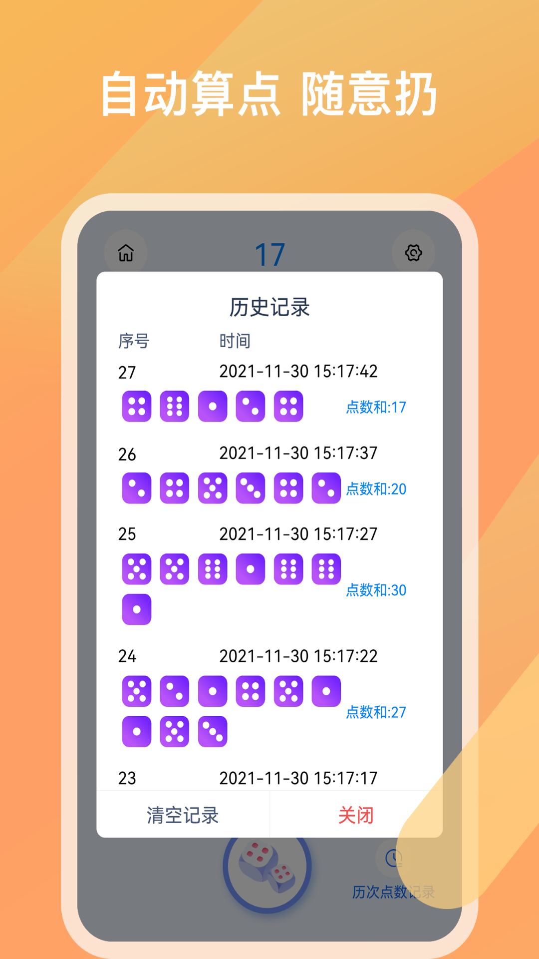 欢乐摇骰子,是一款简洁又好用的摇点数工具。有没有过忘记带实体骰子的时候呢?没关系,只要有一台手机就足够啦!