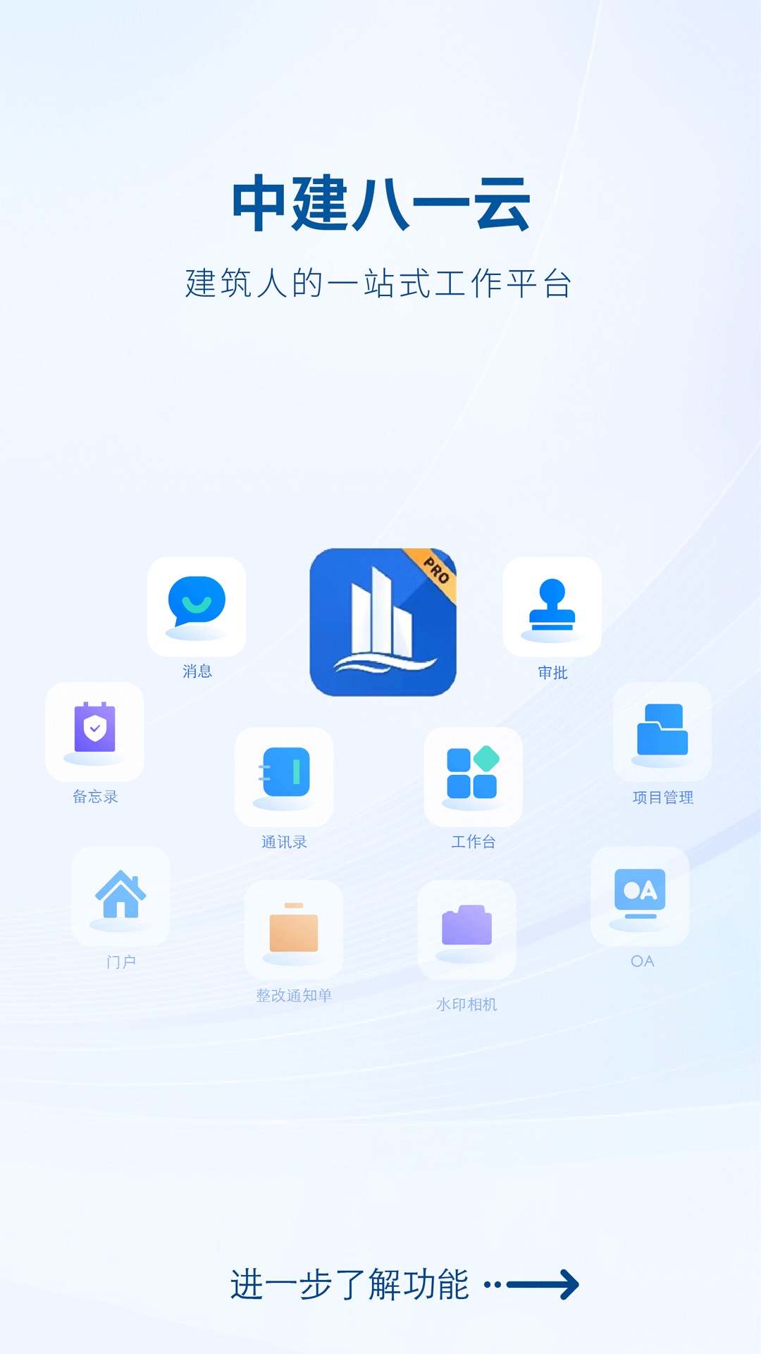 中建八一云,面向中建八局一公司内部使用,助力实现机关、分公司、项目三级管控,依托即时通讯、水印相机等功能,聚焦高频且核心场景打造业务应用,为用户提供沟通、协作服务,搭建建筑生产协同互联网产品,提高建筑现场生产管理效率,领航建筑行业科技平台化发展