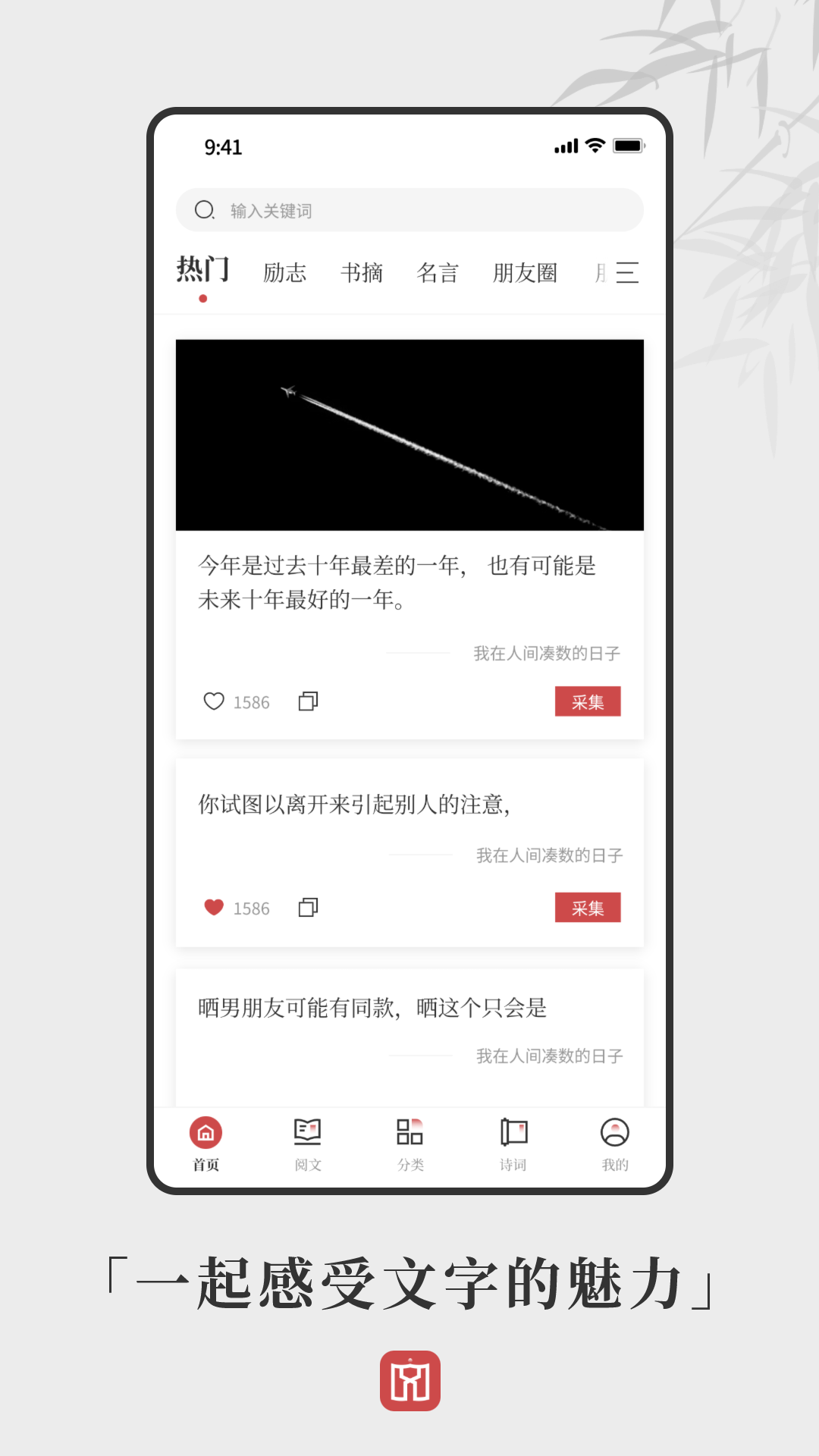 「文案分类合集」:“文案够”的文案句子分类极为丰富,简直是句子控们的福音!如果您想品读好句,这里是不二之选。它为您提供多种类型的文案句子素材,像励志语录、情感、毒鸡汤、早安文案、朋友圈文案、抖音文案、春节文案、新春文案、亲子家庭教育、二十四节气、一句话心情语录等各种语录应有尽有,新春佳节想要发圈再也不用发愁,众多句子文案可供您阅读品味。恋爱话术、爱情语录、藏头诗、情话等也不在话下。这里还有古诗诗词大全、文学书摘、名人名言、人物作者等丰富的文学内容,更有金句谷,让您找文案时毫无烦恼,随时成为您省心的素材库,方便您在朋友圈转发分享优质内容。
