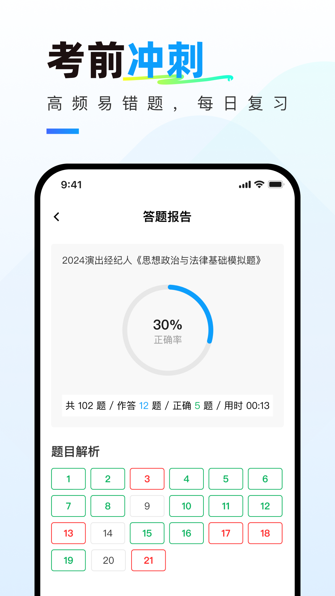 “演出经纪人真题库”特邀多位演出经纪人领域的知名教师与专家,针对每一道题目进行详尽的解析与点评。借助他们的专业引导,您不但能学会正确的答题技巧,还能深入洞悉题目背后的原理与知识点。此外,依据历年的考试数据,软件总结出了高频考点,协助您把握考试中的重点与难点。