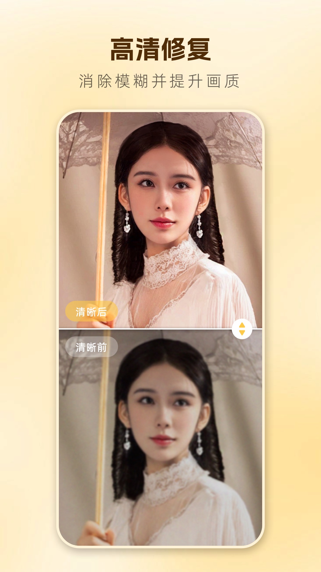 针对人物、景色、物品等模糊图片,可实现一键增强清晰度。
