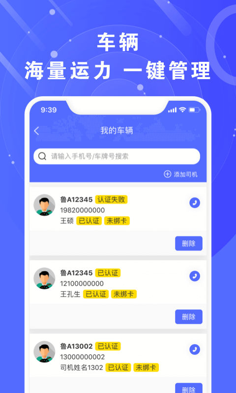 4、“我的车辆”——添加服务站运力,海量运力可供选择;