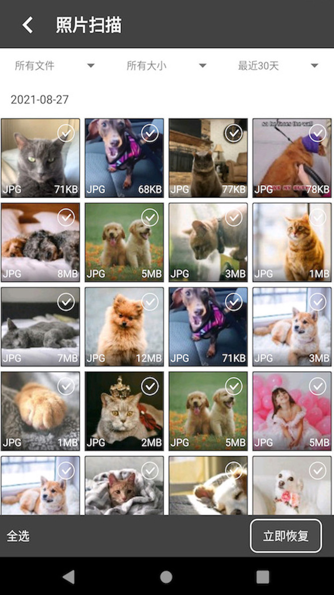 能够对微信、qq、相册等软件里的图片、视频、音频、压缩包等各种文件数据进行恢复。