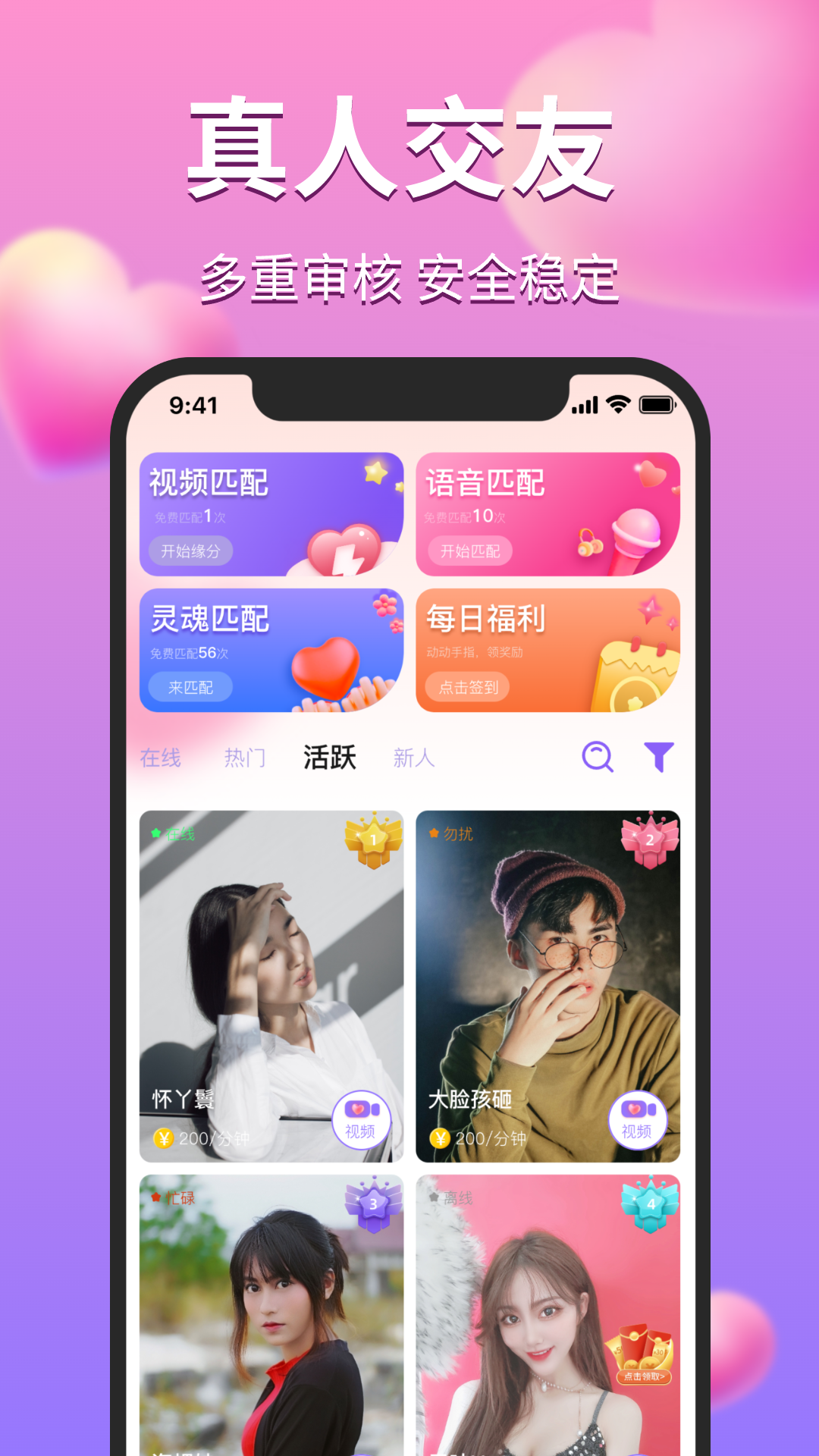 【视频匹配】线上视频聊天,线下见面交友,结识附近有缘人。用心跳匹配心跳,陪你视频畅聊,男女交友平台,我的约会我做主!