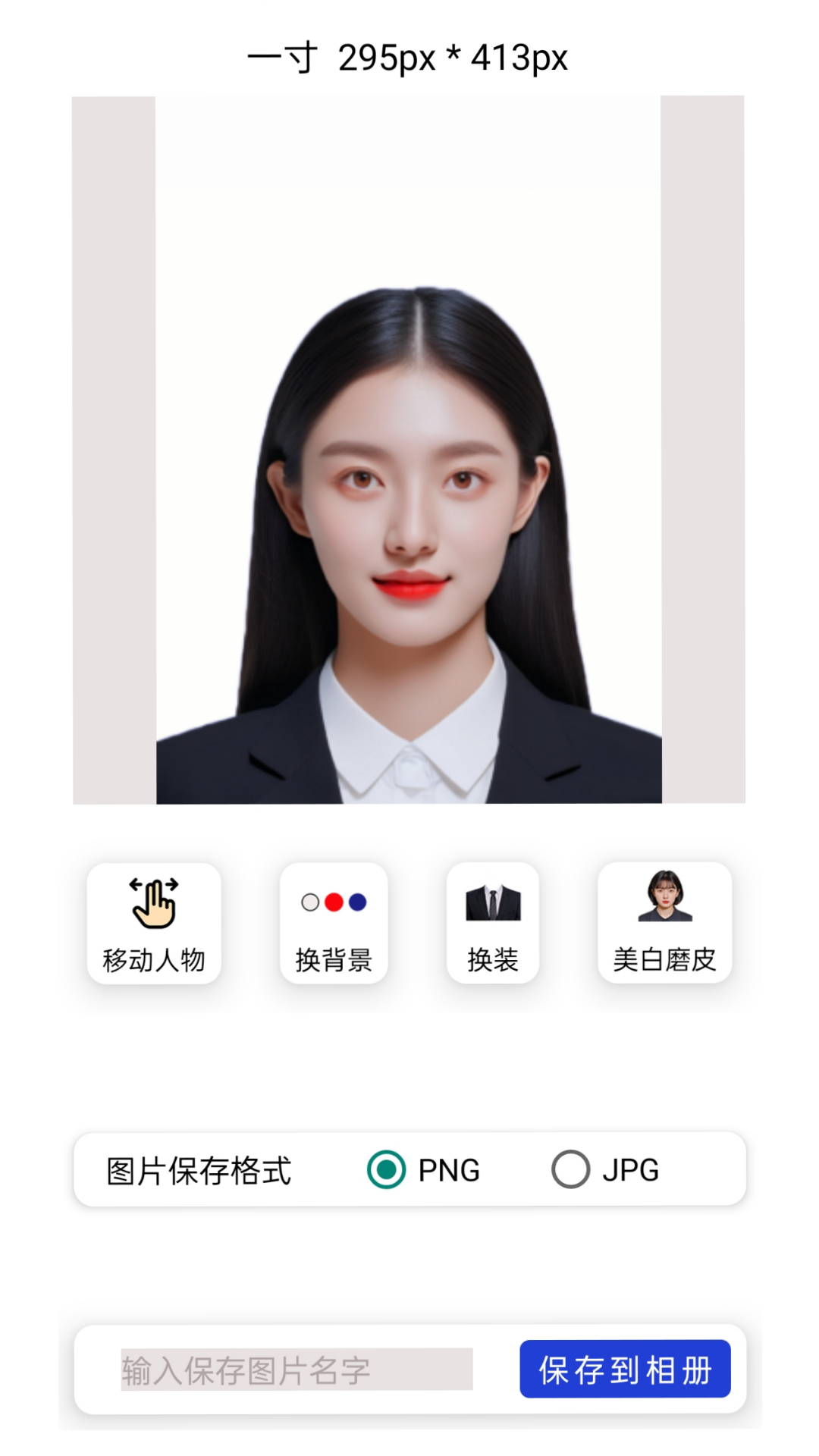 本App用来制作电子证件照,并还包含图片裁剪,图片容量压缩和图片像素变换这些图片处理工具。通过包含有人物的图片可以制作出不同背景颜色和不同着装的电子证件照。软件包含图片大小位置调整,换装,橡皮擦,边缘处理,美白磨皮,自定义图片保存格式,自定义图片尺寸大小等多种辅助功能,帮助更好地制作出满意的证件照。您的满意是我们最大的动力!