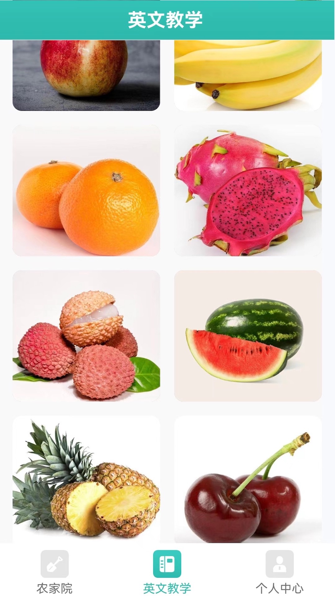 英文板块内容:涵盖多种常见水果相关的英文知识,能让用户轻松增长见识。