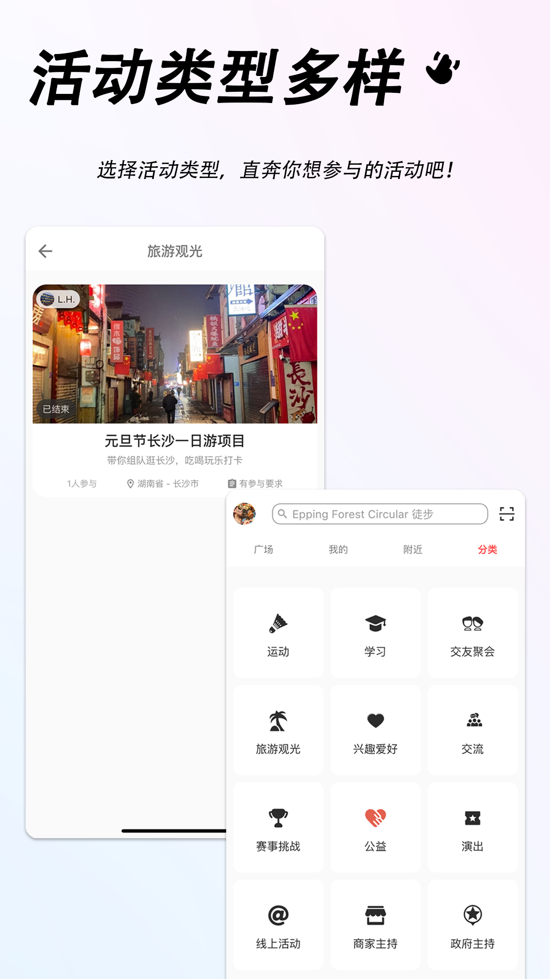 手手是一个充满活力的“活动社交平台”。在这里,你能够发布晒晒动态,创建活动,还可以发布求助信息。