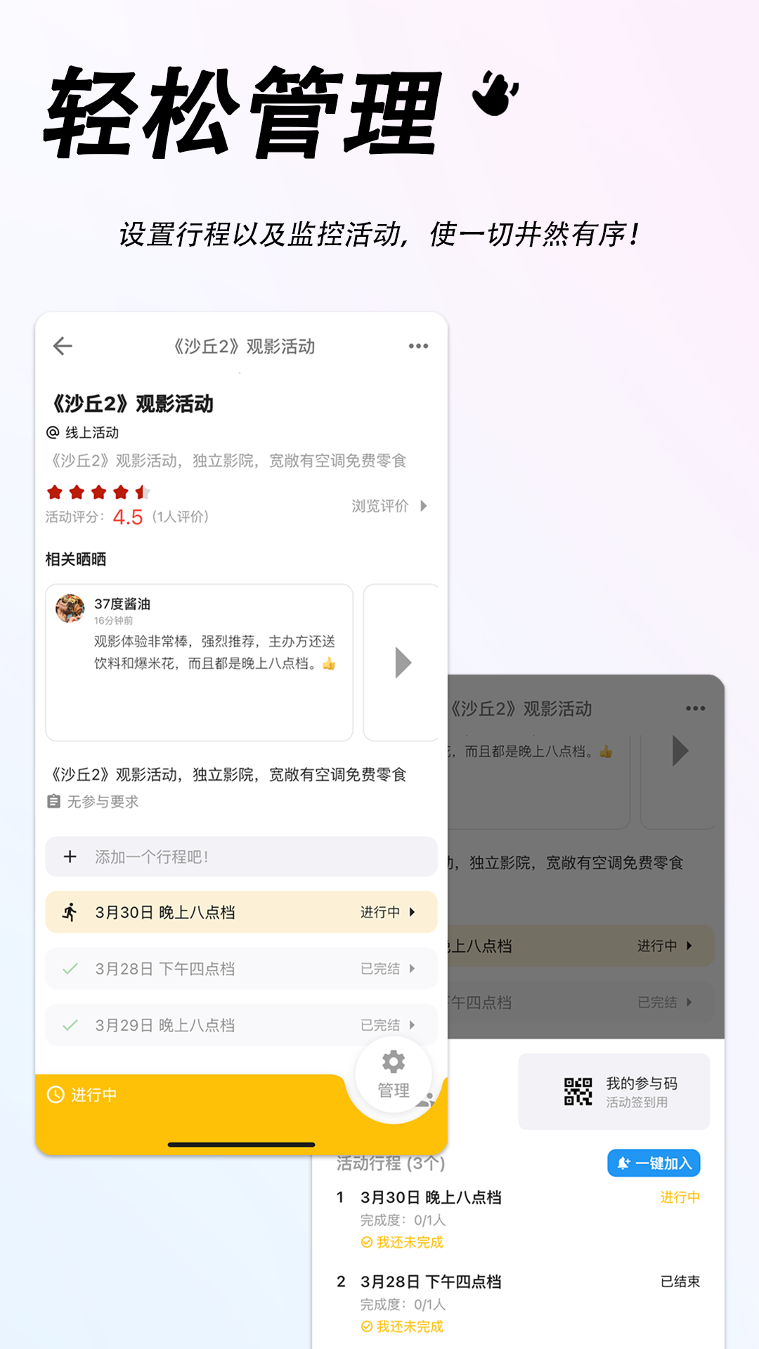 借助手手,你能够记录活动的进展情况,方便地联络活动参与者,进行线下签到以及身份核验。并且,你还能在整个社区宣传推广自己的活动,从而吸引那些对此感兴趣的人加入。