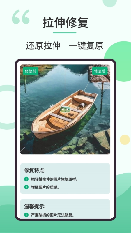 无论是模糊不清、布满斑驳痕迹、失焦,还是低清的照片,只需一键操作,就能让其焕然一新。