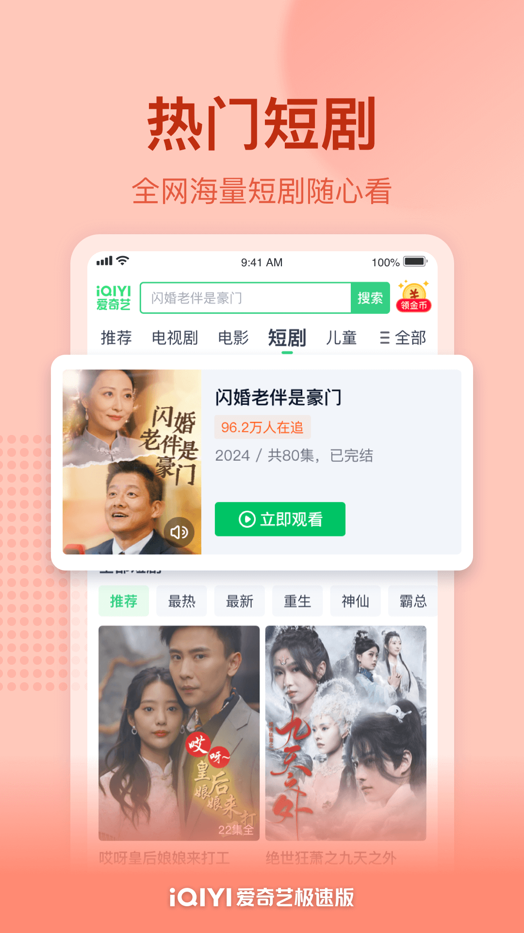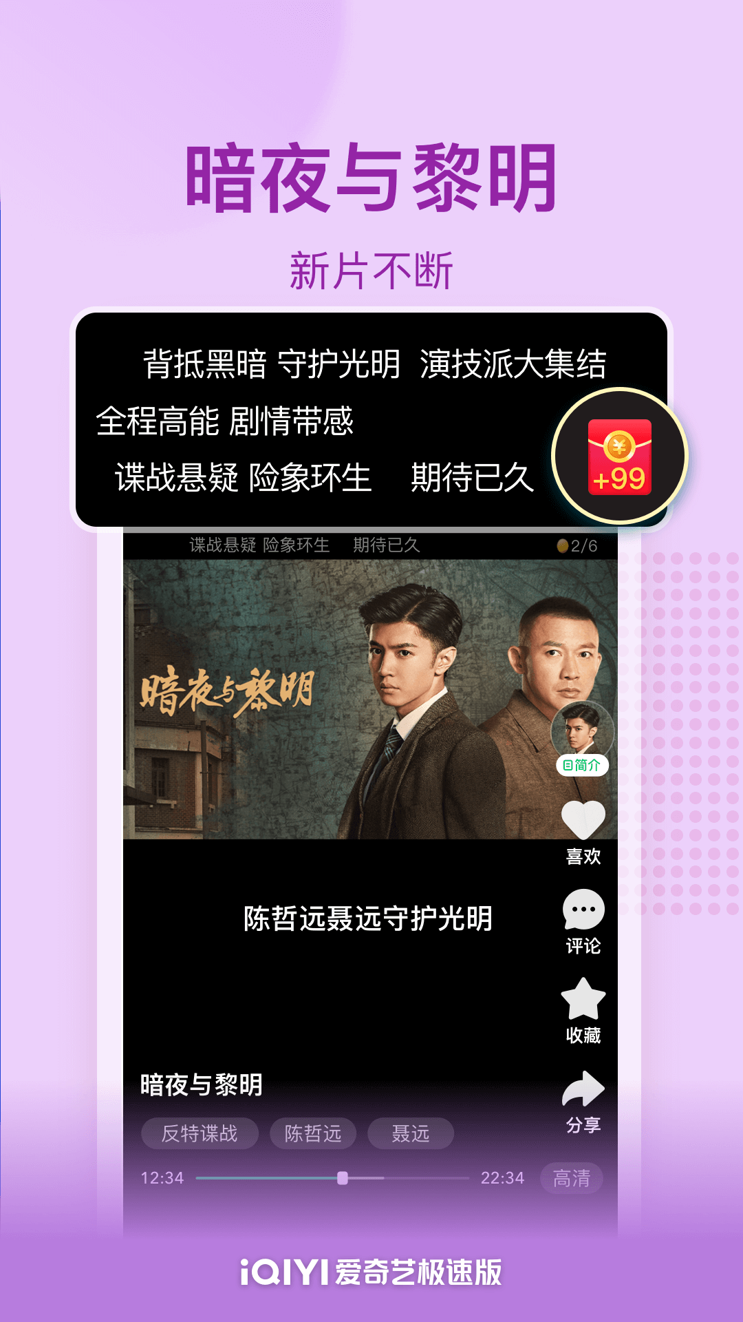 爱奇艺极速版是爱奇艺官方推出的APP哦。这里涵盖了爱奇艺的所有内容,它的功能非常简洁,而且占用的内存特别少呢。其会员性价比超高,在价格实惠的同时还能享受爱奇艺的全部内容,只是会有广告。另外,在这个APP上还能边看视频边赚取金币。