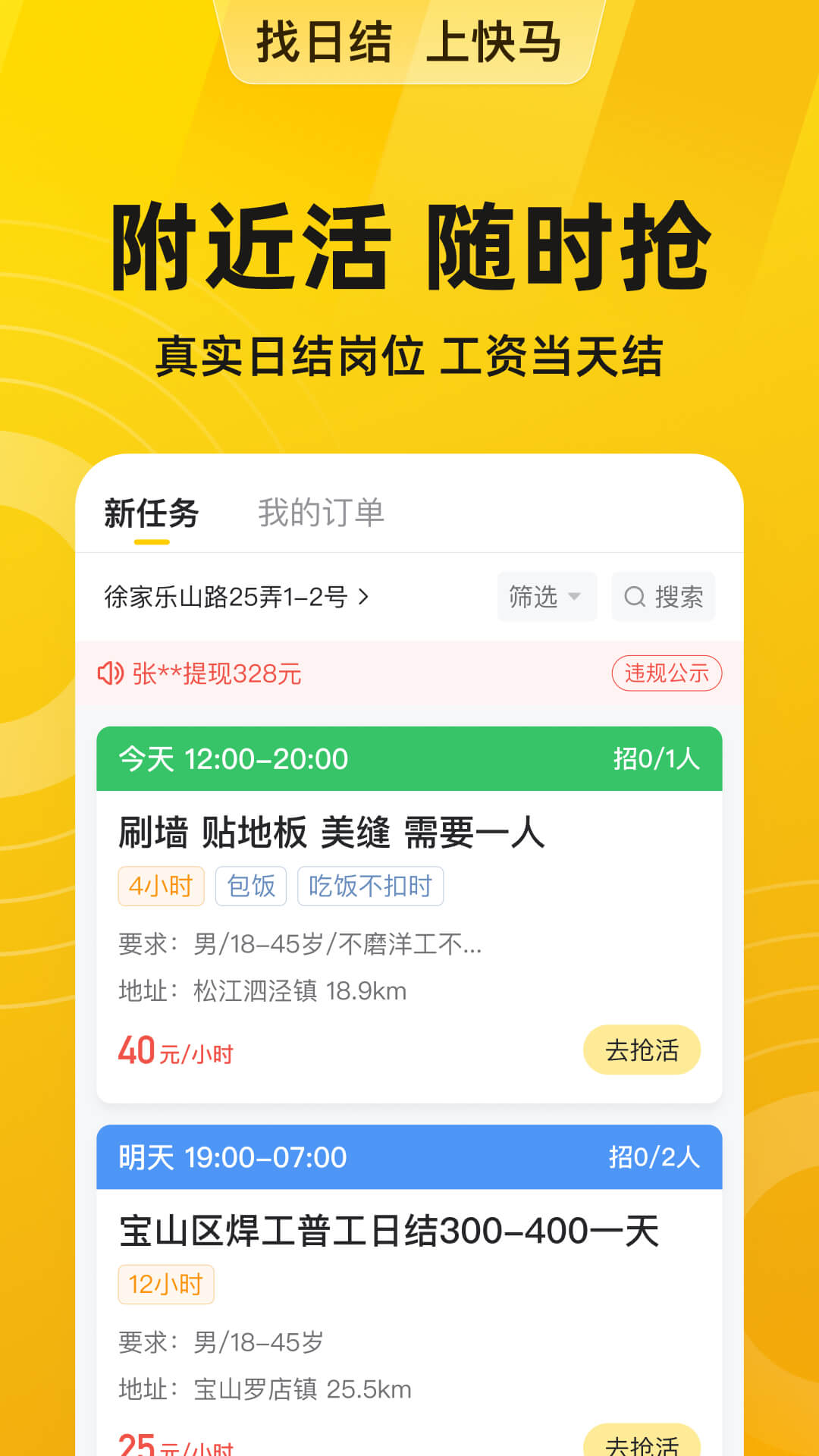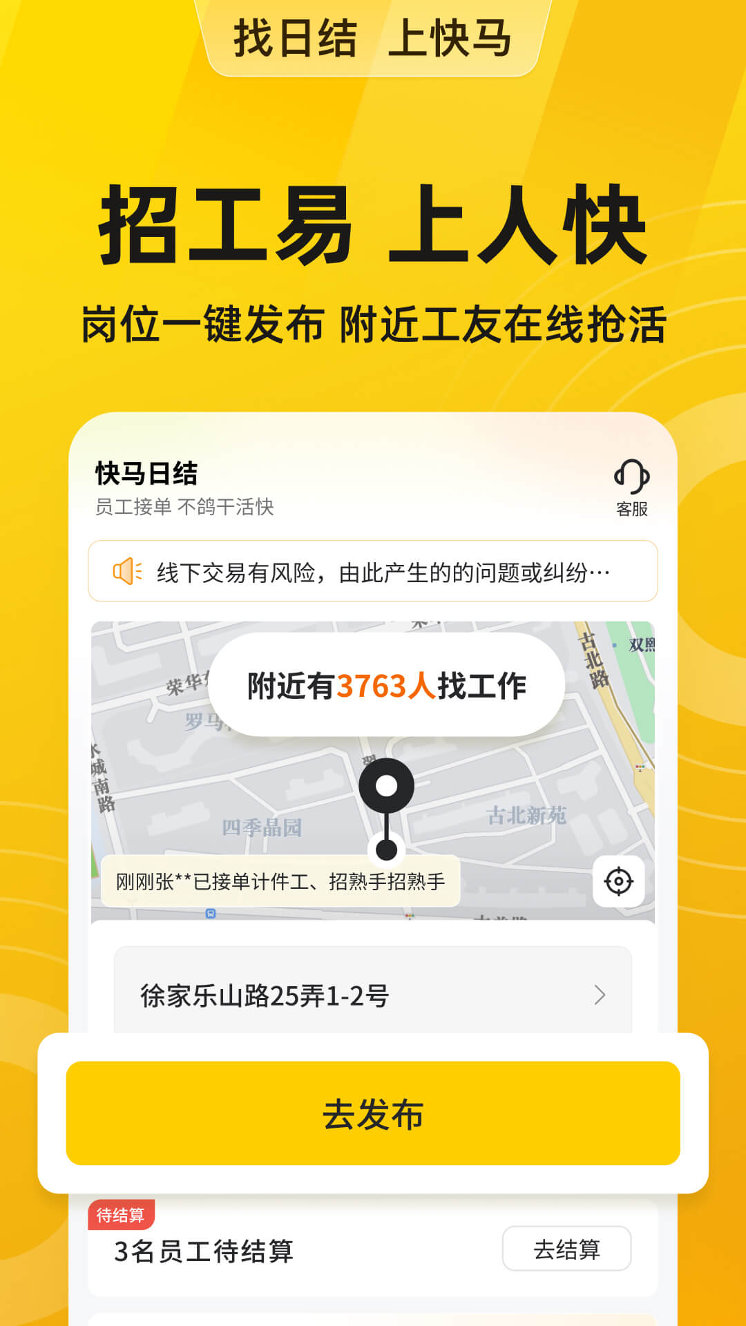 快马日结,这是一款专为蓝领行业打造的智能APP,专注于日结工和临时工的招聘求职服务。
