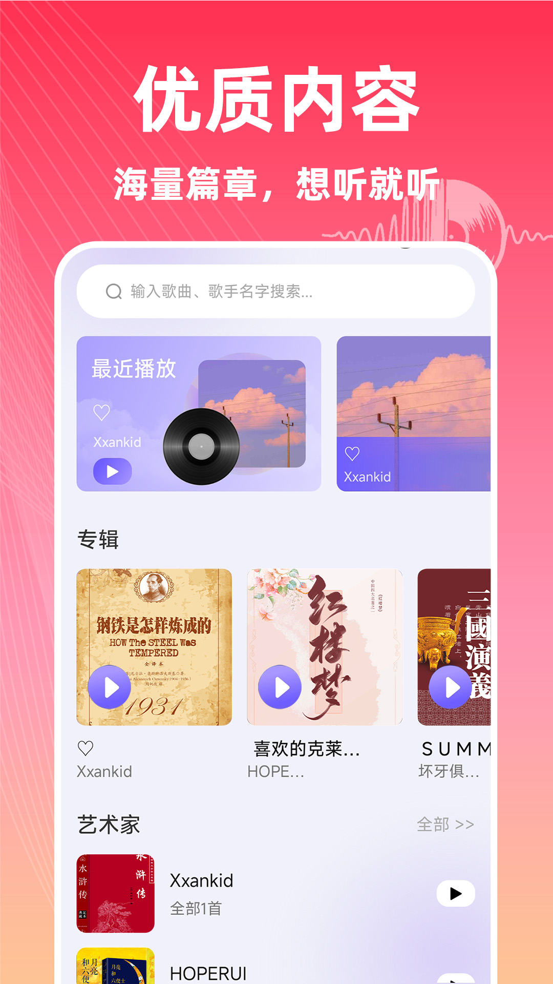 -音质清晰,播放无延迟无卡顿,频道切换自如,让您轻松听、放心听;